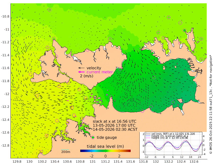 79cm/s 78T +4cm/s rms + 6cm/s 51T. Darwin_C1 52m 39cm/s 85T +4cm/s rms + 7cm/s -161T. Darwin_CW1 22m 49cm/s 74T +4cm/s rms + 8cm/s 61T. Darwin_CW2 34m 19cm/s 66T +3cm/s rms + 9cm/s 98T. Darwin_CW3 22m 51cm/s 87T +5cm/s rms + 7cm/s 88T. Darwin_C3 56m 54cm/s 63T +2cm/s rms + 9cm/s -126T. Darwin_CTbW 22m 53cm/s 91T +1cm/s rms + 1cm/s -47T. DARBGF 30m 53cm/s 121T +4cm/s rms + 3cm/s 80T. NRSDAR 19m 36cm Goodrich Bank 126cm Point Jenny 125cm Native Point 115cm Fish Reef 128cm Tapa Bay 91cm Point Fawcett (Offshore) 117cm Burge Point 122cm Munkunuwa 112cm Beagle A 116cm Parsons Bank 118cm Fenton Patches 112cm Hancox Shoal Area 121cm Nightcliff 107cm Darwin 113cm Charles Point Patches 51cm Glyde Point 5cm Chambers Bay -23cm Point Stuart 28cm Cape Hotham 6cm Christine Reef -32cm West Alligator Head -64cm East Field Island 5cm Two Hills Bay 6cm Camp Point 112cm Medina Inlet South 79cm South Barlow Point 68cm St. Asaph Bay 44cm Cape Van Dieman 39cm Snake Bay 42cm Cache Point 40cm Point Jahleel (Off) 42cm Cape Don 43cm Port Essington 51cm Smith Point - West 45cm NW Peacock Island 35cm North Of Jones Shoal 13cm Peacock Island 44cm Point David 52cm D'urville Point 45cm Copeland Island 39cm One Tree Point