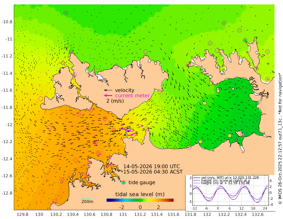 149cm/s 78T +4cm/s rms + 6cm/s 51T. Darwin_C1 52m 109cm/s 90T +4cm/s rms + 7cm/s -161T. Darwin_CW1 22m 96cm/s 74T +4cm/s rms + 8cm/s 61T. Darwin_CW2 34m 70cm/s 47T +3cm/s rms + 9cm/s 98T. Darwin_CW3 22m 138cm/s 89T +5cm/s rms + 7cm/s 88T. Darwin_C3 56m 80cm/s 65T +2cm/s rms + 9cm/s -126T. Darwin_CTbW 22m 54cm/s 86T +1cm/s rms + 1cm/s -47T. DARBGF 30m 51cm/s 114T +4cm/s rms + 3cm/s 80T. NRSDAR 19m 22cm Goodrich Bank 211cm Point Jenny 209cm Native Point 210cm Fish Reef 229cm Tapa Bay 123cm Point Fawcett (Offshore) 233cm Burge Point 213cm Munkunuwa 186cm Beagle A 223cm Parsons Bank 229cm Fenton Patches 223cm Hancox Shoal Area 240cm Nightcliff 235cm Darwin 225cm Charles Point Patches 153cm Glyde Point 99cm Chambers Bay 73cm Point Stuart 119cm Cape Hotham 95cm Christine Reef 72cm West Alligator Head 44cm East Field Island 82cm Two Hills Bay 87cm Camp Point 213cm Medina Inlet South 101cm South Barlow Point 77cm St. Asaph Bay 29cm Cape Van Dieman 28cm Snake Bay 32cm Cache Point 42cm Point Jahleel (Off) 72cm Cape Don 45cm Port Essington 51cm Smith Point - West 43cm NW Peacock Island 29cm North Of Jones Shoal 11cm Peacock Island 50cm Point David 51cm D'urville Point 53cm Copeland Island 46cm One Tree Point