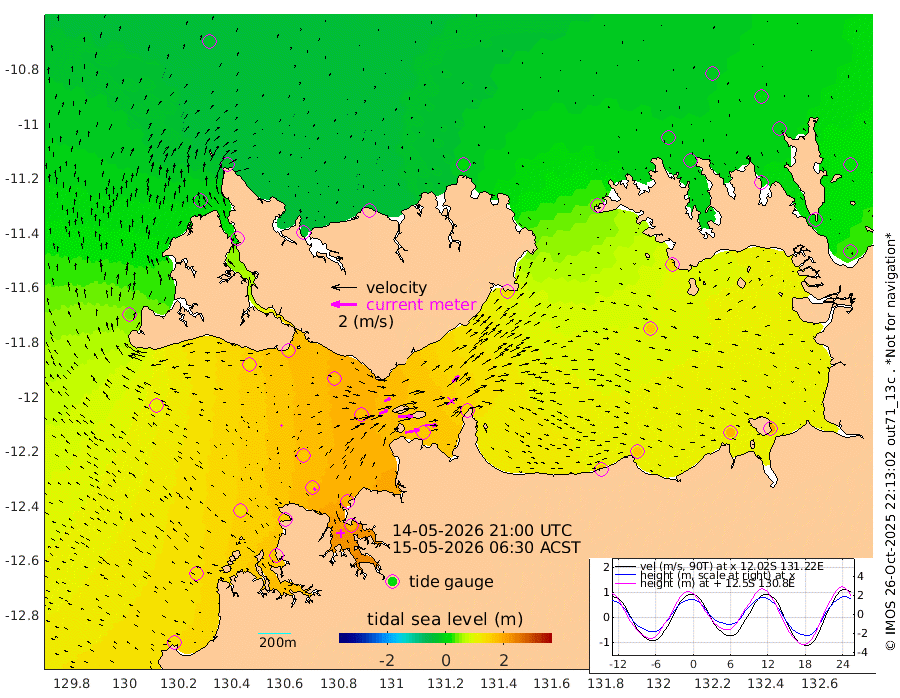 112cm/s 79T +4cm/s rms + 6cm/s 51T. Darwin_C1 52m 96cm/s 93T +4cm/s rms + 7cm/s -161T. Darwin_CW1 22m 69cm/s 71T +4cm/s rms + 8cm/s 61T. Darwin_CW2 34m 73cm/s 43T +3cm/s rms + 9cm/s 98T. Darwin_CW3 22m 116cm/s 90T +5cm/s rms + 7cm/s 88T. Darwin_C3 56m 54cm/s 66T +2cm/s rms + 9cm/s -126T. Darwin_CTbW 22m 12cm/s -45T +1cm/s rms + 1cm/s -47T. DARBGF 30m 23cm/s -44T +4cm/s rms + 3cm/s 80T. NRSDAR 19m -30cm Goodrich Bank 128cm Point Jenny 124cm Native Point 134cm Fish Reef 154cm Tapa Bay 39cm Point Fawcett (Offshore) 166cm Burge Point 125cm Munkunuwa 104cm Beagle A 159cm Parsons Bank 164cm Fenton Patches 177cm Hancox Shoal Area 184cm Nightcliff 190cm Darwin 167cm Charles Point Patches 163cm Glyde Point 173cm Chambers Bay 169cm Point Stuart 151cm Cape Hotham 161cm Christine Reef 186cm West Alligator Head 195cm East Field Island 133cm Two Hills Bay 139cm Camp Point 141cm Medina Inlet South 19cm South Barlow Point 2cm St. Asaph Bay -31cm Cape Van Dieman -29cm Snake Bay -22cm Cache Point 0cm Point Jahleel (Off) 49cm Cape Don 2cm Port Essington 3cm Smith Point - West 1cm NW Peacock Island -12cm North Of Jones Shoal -3cm Peacock Island 20cm Point David 4cm D'urville Point 26cm Copeland Island 18cm One Tree Point