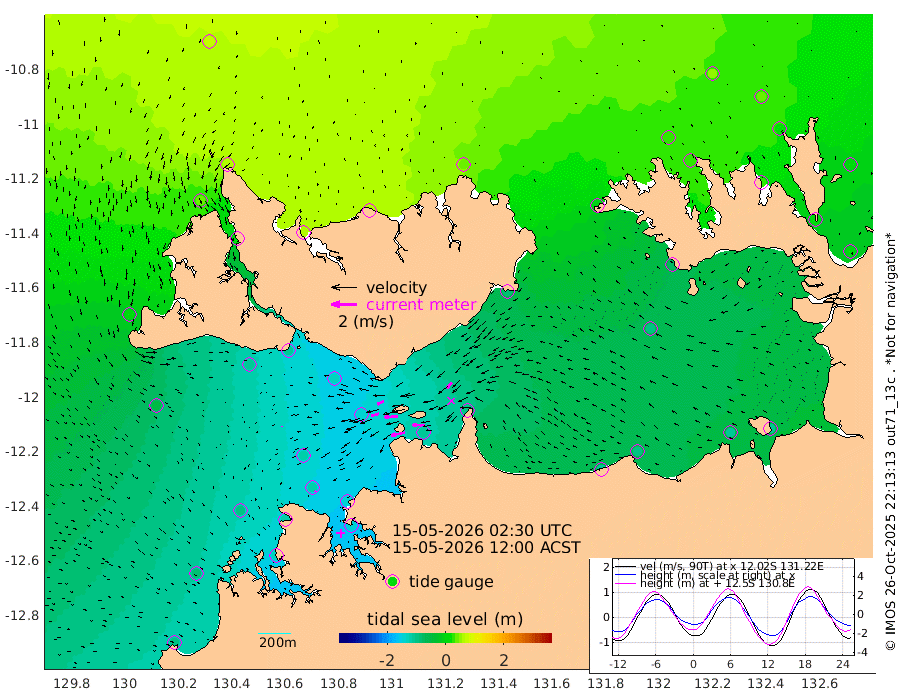 111cm/s -101T +4cm/s rms + 6cm/s 51T. Darwin_C1 52m 94cm/s -90T +4cm/s rms + 7cm/s -161T. Darwin_CW1 22m 63cm/s -107T +4cm/s rms + 8cm/s 61T. Darwin_CW2 34m 60cm/s -135T +3cm/s rms + 9cm/s 98T. Darwin_CW3 22m 104cm/s -91T +5cm/s rms + 7cm/s 88T. Darwin_C3 56m 57cm/s -115T +2cm/s rms + 9cm/s -126T. Darwin_CTbW 22m 6cm/s -158T +1cm/s rms + 1cm/s -47T. DARBGF 30m 8cm/s -170T +4cm/s rms + 3cm/s 80T. NRSDAR 19m 68cm Goodrich Bank -91cm Point Jenny -88cm Native Point -94cm Fish Reef -114cm Tapa Bay 1cm Point Fawcett (Offshore) -126cm Burge Point -107cm Munkunuwa -56cm Beagle A -129cm Parsons Bank -115cm Fenton Patches -135cm Hancox Shoal Area -141cm Nightcliff -145cm Darwin -118cm Charles Point Patches -109cm Glyde Point -106cm Chambers Bay -99cm Point Stuart -93cm Cape Hotham -95cm Christine Reef -111cm West Alligator Head -107cm East Field Island -73cm Two Hills Bay -79cm Camp Point -106cm Medina Inlet South 12cm South Barlow Point 35cm St. Asaph Bay 66cm Cape Van Dieman 64cm Snake Bay 64cm Cache Point 41cm Point Jahleel (Off) -11cm Cape Don 31cm Port Essington 32cm Smith Point - West 35cm NW Peacock Island 49cm North Of Jones Shoal 15cm Peacock Island 6cm Point David 29cm D'urville Point 0cm Copeland Island 11cm One Tree Point