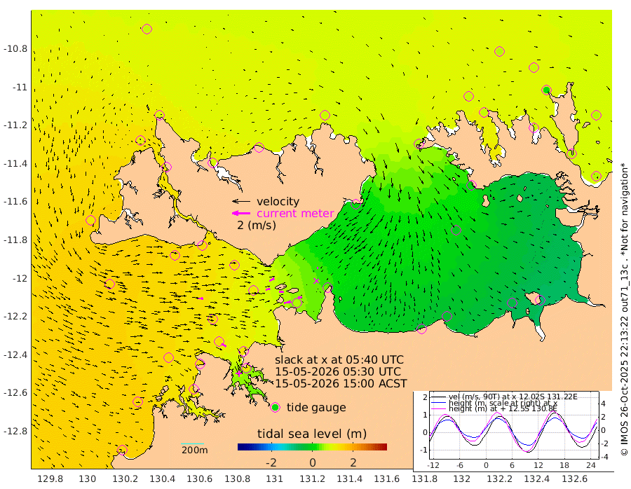 78cm/s 78T +4cm/s rms + 6cm/s 51T. Darwin_C1 52m 46cm/s 84T +4cm/s rms + 7cm/s -161T. Darwin_CW1 22m 49cm/s 74T +4cm/s rms + 8cm/s 61T. Darwin_CW2 34m 10cm/s 95T +3cm/s rms + 9cm/s 98T. Darwin_CW3 22m 49cm/s 87T +5cm/s rms + 7cm/s 88T. Darwin_C3 56m 61cm/s 62T +2cm/s rms + 9cm/s -126T. Darwin_CTbW 22m 59cm/s 92T +1cm/s rms + 1cm/s -47T. DARBGF 30m 58cm/s 122T +4cm/s rms + 3cm/s 80T. NRSDAR 19m 71cm Goodrich Bank 138cm Point Jenny 142cm Native Point 141cm Fish Reef 140cm Tapa Bay 118cm Point Fawcett (Offshore) 145cm Burge Point 143cm Munkunuwa 143cm Beagle A 135cm Parsons Bank 144cm Fenton Patches 114cm Hancox Shoal Area 130cm Nightcliff 130cm Darwin 133cm Charles Point Patches 63cm Glyde Point -19cm Chambers Bay -31cm Point Stuart 35cm Cape Hotham -12cm Christine Reef -45cm West Alligator Head -79cm East Field Island 7cm Two Hills Bay 9cm Camp Point 139cm Medina Inlet South 118cm South Barlow Point 99cm St. Asaph Bay 79cm Cape Van Dieman 85cm Snake Bay 74cm Cache Point 68cm Point Jahleel (Off) 61cm Cape Don 69cm Port Essington 72cm Smith Point - West 69cm NW Peacock Island 60cm North Of Jones Shoal 22cm Peacock Island 65cm Point David 74cm D'urville Point 61cm Copeland Island 62cm One Tree Point