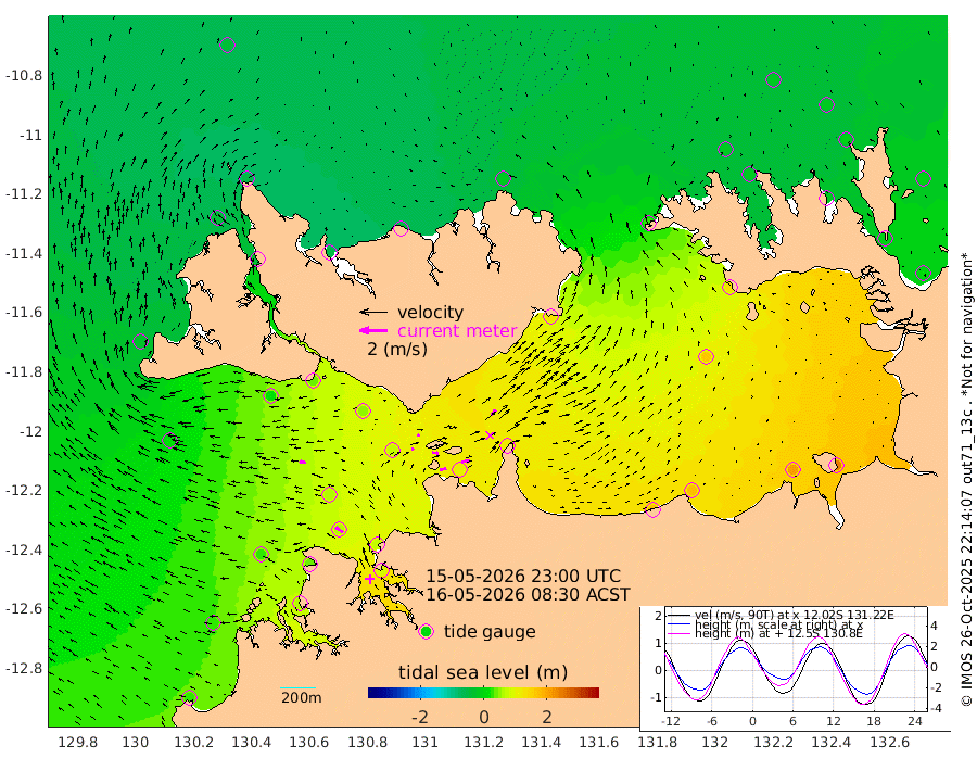 46cm/s 80T +4cm/s rms + 6cm/s 51T. Darwin_C1 52m 59cm/s 89T +4cm/s rms + 7cm/s -161T. Darwin_CW1 22m 15cm/s 69T +4cm/s rms + 8cm/s 61T. Darwin_CW2 34m 50cm/s 40T +3cm/s rms + 9cm/s 98T. Darwin_CW3 22m 47cm/s 94T +5cm/s rms + 7cm/s 88T. Darwin_C3 56m 17cm/s 69T +2cm/s rms + 9cm/s -126T. Darwin_CTbW 22m 50cm/s -81T +1cm/s rms + 1cm/s -47T. DARBGF 30m 65cm/s -53T +4cm/s rms + 3cm/s 80T. NRSDAR 19m -40cm Goodrich Bank 27cm Point Jenny 24cm Native Point 32cm Fish Reef 45cm Tapa Bay -24cm Point Fawcett (Offshore) 57cm Burge Point 14cm Munkunuwa 14cm Beagle A 52cm Parsons Bank 57cm Fenton Patches 78cm Hancox Shoal Area 75cm Nightcliff 84cm Darwin 64cm Charles Point Patches 111cm Glyde Point 170cm Chambers Bay 180cm Point Stuart 120cm Cape Hotham 159cm Christine Reef 204cm West Alligator Head 237cm East Field Island 127cm Two Hills Bay 130cm Camp Point 38cm Medina Inlet South -37cm South Barlow Point -39cm St. Asaph Bay -48cm Cape Van Dieman -46cm Snake Bay -34cm Cache Point -16cm Point Jahleel (Off) 25cm Cape Don -17cm Port Essington -19cm Smith Point - West -17cm NW Peacock Island -22cm North Of Jones Shoal -8cm Peacock Island -2cm Point David -19cm D'urville Point 3cm Copeland Island 0cm One Tree Point