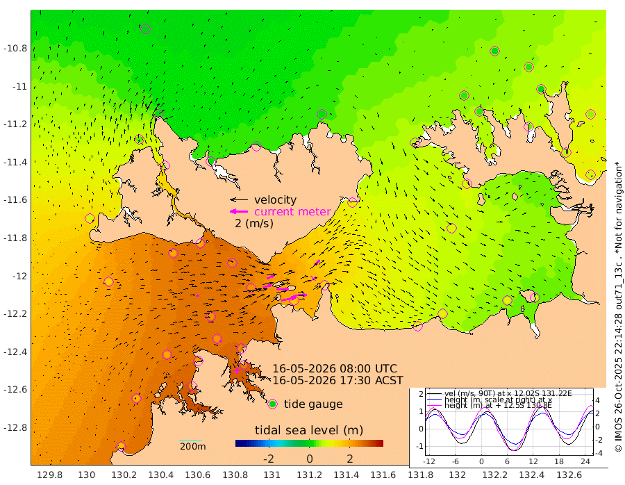 167cm/s 77T +4cm/s rms + 6cm/s 51T. Darwin_C1 52m 129cm/s 89T +4cm/s rms + 7cm/s -161T. Darwin_CW1 22m 92cm/s 74T +4cm/s rms + 8cm/s 61T. Darwin_CW2 34m 88cm/s 45T +3cm/s rms + 9cm/s 98T. Darwin_CW3 22m 141cm/s 89T +5cm/s rms + 7cm/s 88T. Darwin_C3 56m 87cm/s 65T +2cm/s rms + 9cm/s -126T. Darwin_CTbW 22m 32cm/s 82T +1cm/s rms + 1cm/s -47T. DARBGF 30m 31cm/s 105T +4cm/s rms + 3cm/s 80T. NRSDAR 19m -8cm Goodrich Bank 179cm Point Jenny 180cm Native Point 192cm Fish Reef 206cm Tapa Bay 79cm Point Fawcett (Offshore) 227cm Burge Point 200cm Munkunuwa 155cm Beagle A 227cm Parsons Bank 217cm Fenton Patches 215cm Hancox Shoal Area 226cm Nightcliff 244cm Darwin 215cm Charles Point Patches 168cm Glyde Point 102cm Chambers Bay 101cm Point Stuart 136cm Cape Hotham 96cm Christine Reef 103cm West Alligator Head 81cm East Field Island 99cm Two Hills Bay 103cm Camp Point 202cm Medina Inlet South 75cm South Barlow Point 35cm St. Asaph Bay 0cm Cape Van Dieman 12cm Snake Bay -1cm Cache Point 19cm Point Jahleel (Off) 66cm Cape Don 33cm Port Essington 32cm Smith Point - West 31cm NW Peacock Island 5cm North Of Jones Shoal 5cm Peacock Island 66cm Point David 41cm D'urville Point 68cm Copeland Island 56cm One Tree Point
