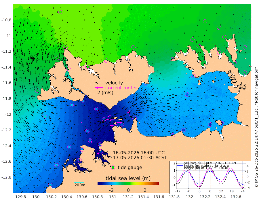 172cm/s -101T +4cm/s rms + 6cm/s 51T. Darwin_C1 52m 154cm/s -92T +4cm/s rms + 7cm/s -161T. Darwin_CW1 22m 71cm/s -105T +4cm/s rms + 8cm/s 61T. Darwin_CW2 34m 109cm/s -138T +3cm/s rms + 9cm/s 98T. Darwin_CW3 22m 141cm/s -90T +5cm/s rms + 7cm/s 88T. Darwin_C3 56m 88cm/s -116T +2cm/s rms + 9cm/s -126T. Darwin_CTbW 22m 27cm/s 112T +1cm/s rms + 1cm/s -47T. DARBGF 30m 40cm/s 137T +4cm/s rms + 3cm/s 80T. NRSDAR 19m 30cm Goodrich Bank -165cm Point Jenny -164cm Native Point -181cm Fish Reef -202cm Tapa Bay -46cm Point Fawcett (Offshore) -231cm Burge Point -164cm Munkunuwa -138cm Beagle A -225cm Parsons Bank -223cm Fenton Patches -239cm Hancox Shoal Area -243cm Nightcliff -268cm Darwin -229cm Charles Point Patches -238cm Glyde Point -242cm Chambers Bay -254cm Point Stuart -223cm Cape Hotham -228cm Christine Reef -276cm West Alligator Head -292cm East Field Island -203cm Two Hills Bay -210cm Camp Point -193cm Medina Inlet South -33cm South Barlow Point 0cm St. Asaph Bay 31cm Cape Van Dieman 19cm Snake Bay 20cm Cache Point -12cm Point Jahleel (Off) -86cm Cape Don -23cm Port Essington -20cm Smith Point - West -23cm NW Peacock Island 4cm North Of Jones Shoal -1cm Peacock Island -65cm Point David -28cm D'urville Point -69cm Copeland Island -58cm One Tree Point