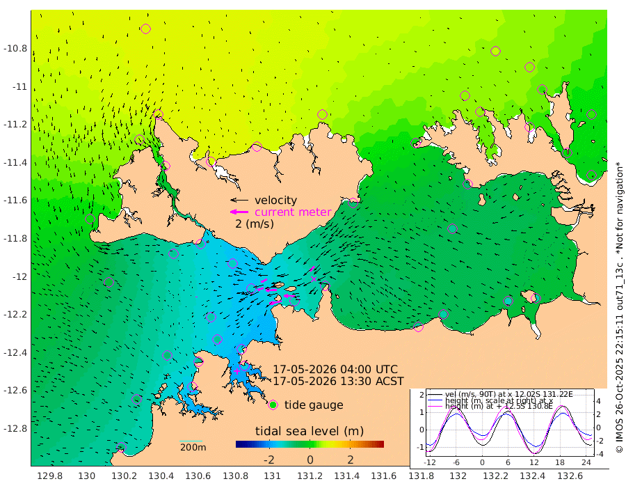 145cm/s -101T +4cm/s rms + 6cm/s 51T. Darwin_C1 52m 126cm/s -91T +4cm/s rms + 7cm/s -161T. Darwin_CW1 22m 70cm/s -107T +4cm/s rms + 8cm/s 61T. Darwin_CW2 34m 78cm/s -135T +3cm/s rms + 9cm/s 98T. Darwin_CW3 22m 121cm/s -91T +5cm/s rms + 7cm/s 88T. Darwin_C3 56m 73cm/s -115T +2cm/s rms + 9cm/s -126T. Darwin_CTbW 22m 8cm/s 145T +1cm/s rms + 1cm/s -47T. DARBGF 30m 14cm/s 167T +4cm/s rms + 3cm/s 80T. NRSDAR 19m 92cm Goodrich Bank -82cm Point Jenny -79cm Native Point -89cm Fish Reef -108cm Tapa Bay 21cm Point Fawcett (Offshore) -125cm Burge Point -110cm Munkunuwa -44cm Beagle A -134cm Parsons Bank -113cm Fenton Patches -138cm Hancox Shoal Area -142cm Nightcliff -147cm Darwin -109cm Charles Point Patches -113cm Glyde Point -113cm Chambers Bay -114cm Point Stuart -101cm Cape Hotham -103cm Christine Reef -131cm West Alligator Head -127cm East Field Island -82cm Two Hills Bay -79cm Camp Point -103cm Medina Inlet South 30cm South Barlow Point 57cm St. Asaph Bay 90cm Cape Van Dieman 87cm Snake Bay 88cm Cache Point 59cm Point Jahleel (Off) 1cm Cape Don 51cm Port Essington 50cm Smith Point - West 53cm NW Peacock Island 71cm North Of Jones Shoal 23cm Peacock Island 21cm Point David 46cm D'urville Point 14cm Copeland Island 27cm One Tree Point