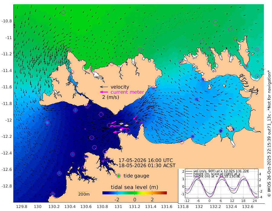 239cm/s -101T +4cm/s rms + 6cm/s 51T. Darwin_C1 52m 203cm/s -91T +4cm/s rms + 7cm/s -161T. Darwin_CW1 22m 113cm/s -106T +4cm/s rms + 8cm/s 61T. Darwin_CW2 34m 127cm/s -137T +3cm/s rms + 9cm/s 98T. Darwin_CW3 22m 195cm/s -90T +5cm/s rms + 7cm/s 88T. Darwin_C3 56m 131cm/s -115T +2cm/s rms + 9cm/s -126T. Darwin_CTbW 22m 13cm/s -140T +1cm/s rms + 1cm/s -47T. DARBGF 30m 14cm/s 180T +4cm/s rms + 3cm/s 80T. NRSDAR 19m -8cm Goodrich Bank -253cm Point Jenny -251cm Native Point -268cm Fish Reef -291cm Tapa Bay -118cm Point Fawcett (Offshore) -321cm Burge Point -254cm Munkunuwa -219cm Beagle A -312cm Parsons Bank -308cm Fenton Patches -318cm Hancox Shoal Area -326cm Nightcliff -356cm Darwin -319cm Charles Point Patches -286cm Glyde Point -252cm Chambers Bay -255cm Point Stuart -255cm Cape Hotham -241cm Christine Reef -272cm West Alligator Head -269cm East Field Island -222cm Two Hills Bay -227cm Camp Point -282cm Medina Inlet South -98cm South Barlow Point -56cm St. Asaph Bay -10cm Cape Van Dieman -22cm Snake Bay -22cm Cache Point -50cm Point Jahleel (Off) -127cm Cape Don -65cm Port Essington -63cm Smith Point - West -63cm NW Peacock Island -33cm North Of Jones Shoal -14cm Peacock Island -100cm Point David -70cm D'urville Point -103cm Copeland Island -95cm One Tree Point