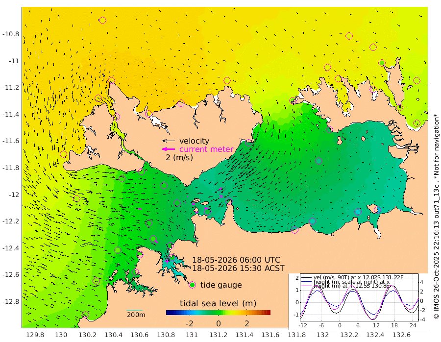 50cm/s -100T +4cm/s rms + 6cm/s 51T. Darwin_C1 52m 54cm/s -91T +4cm/s rms + 7cm/s -161T. Darwin_CW1 22m 9cm/s -111T +4cm/s rms + 8cm/s 61T. Darwin_CW2 34m 61cm/s -137T +3cm/s rms + 9cm/s 98T. Darwin_CW3 22m 45cm/s -89T +5cm/s rms + 7cm/s 88T. Darwin_C3 56m 8cm/s -110T +2cm/s rms + 9cm/s -126T. Darwin_CTbW 22m 54cm/s 97T +1cm/s rms + 1cm/s -47T. DARBGF 30m 58cm/s 130T +4cm/s rms + 3cm/s 80T. NRSDAR 19m 120cm Goodrich Bank 41cm Point Jenny 45cm Native Point 39cm Fish Reef 26cm Tapa Bay 104cm Point Fawcett (Offshore) 13cm Burge Point 27cm Munkunuwa 67cm Beagle A 4cm Parsons Bank 18cm Fenton Patches -14cm Hancox Shoal Area -10cm Nightcliff -6cm Darwin 28cm Charles Point Patches -40cm Glyde Point -108cm Chambers Bay -121cm Point Stuart -56cm Cape Hotham -97cm Christine Reef -146cm West Alligator Head -171cm East Field Island -65cm Two Hills Bay -58cm Camp Point 31cm Medina Inlet South 111cm South Barlow Point 116cm St. Asaph Bay 125cm Cape Van Dieman 126cm Snake Bay 118cm Cache Point 91cm Point Jahleel (Off) 45cm Cape Don 92cm Port Essington 91cm Smith Point - West 91cm NW Peacock Island 100cm North Of Jones Shoal 34cm Peacock Island 67cm Point David 91cm D'urville Point 59cm Copeland Island 70cm One Tree Point