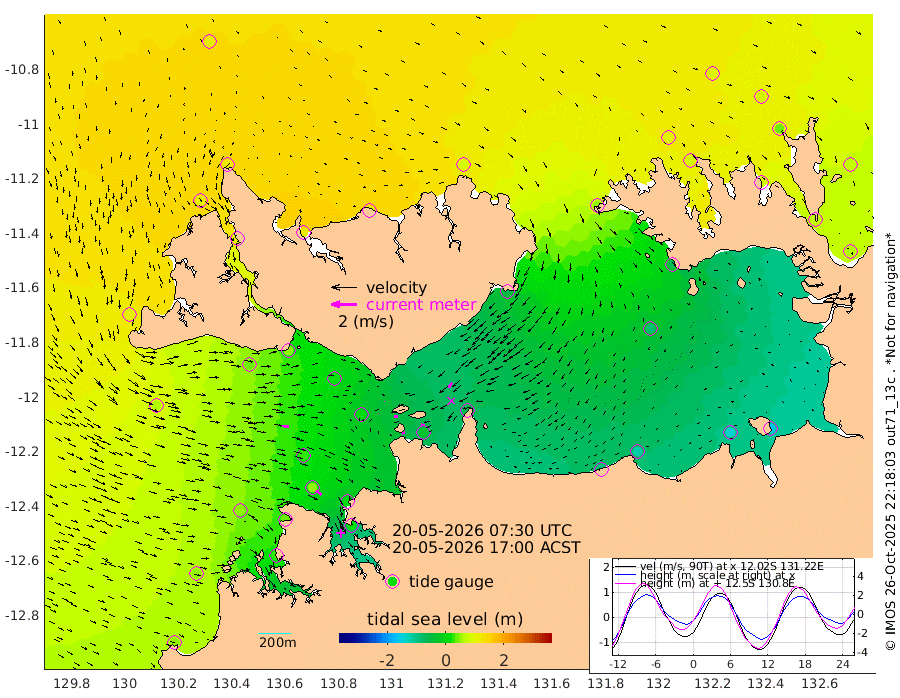 25cm/s -100T +4cm/s rms + 6cm/s 51T. Darwin_C1 52m 28cm/s -90T +4cm/s rms + 7cm/s -161T. Darwin_CW1 22m 2cm/s -136T +4cm/s rms + 8cm/s 61T. Darwin_CW2 34m 50cm/s -139T +3cm/s rms + 9cm/s 98T. Darwin_CW3 22m 27cm/s -89T +5cm/s rms + 7cm/s 88T. Darwin_C3 56m 2cm/s 36T +2cm/s rms + 9cm/s -126T. Darwin_CTbW 22m 51cm/s 96T +1cm/s rms + 1cm/s -47T. DARBGF 30m 52cm/s 129T +4cm/s rms + 3cm/s 80T. NRSDAR 19m 112cm Goodrich Bank 49cm Point Jenny 53cm Native Point 47cm Fish Reef 39cm Tapa Bay 103cm Point Fawcett (Offshore) 27cm Burge Point 41cm Munkunuwa 65cm Beagle A 21cm Parsons Bank 26cm Fenton Patches 5cm Hancox Shoal Area 8cm Nightcliff 17cm Darwin 49cm Charles Point Patches -27cm Glyde Point -100cm Chambers Bay -113cm Point Stuart -47cm Cape Hotham -89cm Christine Reef -138cm West Alligator Head -164cm East Field Island -59cm Two Hills Bay -47cm Camp Point 46cm Medina Inlet South 110cm South Barlow Point 112cm St. Asaph Bay 117cm Cape Van Dieman 119cm Snake Bay 109cm Cache Point 85cm Point Jahleel (Off) 47cm Cape Don 91cm Port Essington 87cm Smith Point - West 87cm NW Peacock Island 98cm North Of Jones Shoal 34cm Peacock Island 68cm Point David 87cm D'urville Point 61cm Copeland Island 72cm One Tree Point