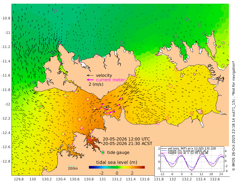 155cm/s 79T +4cm/s rms + 6cm/s 51T. Darwin_C1 52m 109cm/s 92T +4cm/s rms + 7cm/s -161T. Darwin_CW1 22m 60cm/s 71T +4cm/s rms + 8cm/s 61T. Darwin_CW2 34m 102cm/s 43T +3cm/s rms + 9cm/s 98T. Darwin_CW3 22m 102cm/s 90T +5cm/s rms + 7cm/s 88T. Darwin_C3 56m 73cm/s 65T +2cm/s rms + 9cm/s -126T. Darwin_CTbW 22m 23cm/s -75T +1cm/s rms + 1cm/s -47T. DARBGF 30m 33cm/s -45T +4cm/s rms + 3cm/s 80T. NRSDAR 19m -76cm Goodrich Bank 68cm Point Jenny 65cm Native Point 84cm Fish Reef 97cm Tapa Bay -25cm Point Fawcett (Offshore) 115cm Burge Point 82cm Munkunuwa 35cm Beagle A 137cm Parsons Bank 105cm Fenton Patches 140cm Hancox Shoal Area 125cm Nightcliff 152cm Darwin 114cm Charles Point Patches 140cm Glyde Point 150cm Chambers Bay 168cm Point Stuart 138cm Cape Hotham 133cm Christine Reef 184cm West Alligator Head 188cm East Field Island 129cm Two Hills Bay 117cm Camp Point 92cm Medina Inlet South -29cm South Barlow Point -60cm St. Asaph Bay -74cm Cape Van Dieman -64cm Snake Bay -65cm Cache Point -34cm Point Jahleel (Off) 37cm Cape Don -7cm Port Essington -9cm Smith Point - West -2cm NW Peacock Island -37cm North Of Jones Shoal -8cm Peacock Island 55cm Point David 7cm D'urville Point 64cm Copeland Island 42cm One Tree Point
