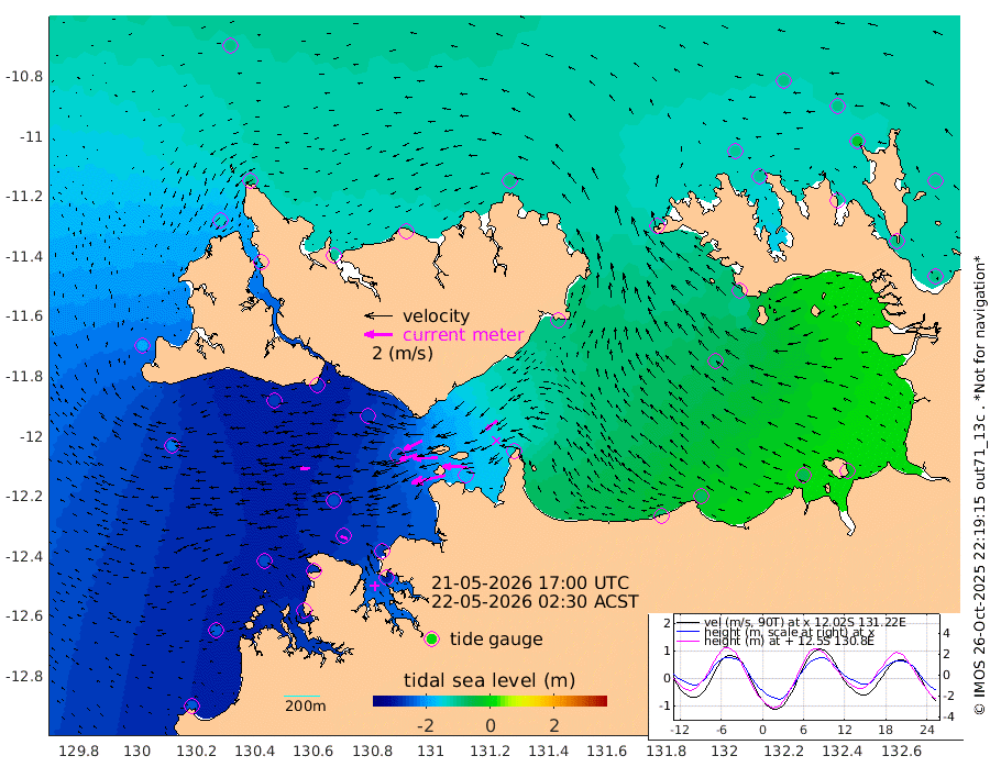249cm/s -102T +4cm/s rms + 6cm/s 51T. Darwin_C1 52m 176cm/s -89T +4cm/s rms + 7cm/s -161T. Darwin_CW1 22m 128cm/s -107T +4cm/s rms + 8cm/s 61T. Darwin_CW2 34m 103cm/s -128T +3cm/s rms + 9cm/s 98T. Darwin_CW3 22m 175cm/s -91T +5cm/s rms + 7cm/s 88T. Darwin_C3 56m 142cm/s -115T +2cm/s rms + 9cm/s -126T. Darwin_CTbW 22m 67cm/s -94T +1cm/s rms + 1cm/s -47T. DARBGF 30m 50cm/s -68T +4cm/s rms + 3cm/s 80T. NRSDAR 19m -90cm Goodrich Bank -244cm Point Jenny -245cm Native Point -256cm Fish Reef -264cm Tapa Bay -190cm Point Fawcett (Offshore) -273cm Burge Point -260cm Munkunuwa -221cm Beagle A -267cm Parsons Bank -253cm Fenton Patches -246cm Hancox Shoal Area -262cm Nightcliff -286cm Darwin -280cm Charles Point Patches -178cm Glyde Point -81cm Chambers Bay -71cm Point Stuart -135cm Cape Hotham -83cm Christine Reef -65cm West Alligator Head -24cm East Field Island -100cm Two Hills Bay -97cm Camp Point -270cm Medina Inlet South -174cm South Barlow Point -142cm St. Asaph Bay -98cm Cape Van Dieman -109cm Snake Bay -97cm Cache Point -100cm Point Jahleel (Off) -123cm Cape Don -107cm Port Essington -106cm Smith Point - West -98cm NW Peacock Island -94cm North Of Jones Shoal -34cm Peacock Island -97cm Point David -104cm D'urville Point -92cm Copeland Island -102cm One Tree Point