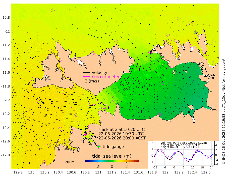 109cm/s 79T +4cm/s rms + 6cm/s 51T. Darwin_C1 52m 71cm/s 85T +4cm/s rms + 7cm/s -161T. Darwin_CW1 22m 35cm/s 77T +4cm/s rms + 8cm/s 61T. Darwin_CW2 34m 30cm/s 60T +3cm/s rms + 9cm/s 98T. Darwin_CW3 22m 42cm/s 88T +5cm/s rms + 7cm/s 88T. Darwin_C3 56m 67cm/s 63T +2cm/s rms + 9cm/s -126T. Darwin_CTbW 22m 43cm/s 92T +1cm/s rms + 1cm/s -47T. DARBGF 30m 39cm/s 119T +4cm/s rms + 3cm/s 80T. NRSDAR 19m 62cm Goodrich Bank 85cm Point Jenny 86cm Native Point 90cm Fish Reef 93cm Tapa Bay 90cm Point Fawcett (Offshore) 85cm Burge Point 97cm Munkunuwa 74cm Beagle A 98cm Parsons Bank 73cm Fenton Patches 81cm Hancox Shoal Area 79cm Nightcliff 98cm Darwin 107cm Charles Point Patches 36cm Glyde Point -35cm Chambers Bay -43cm Point Stuart 14cm Cape Hotham -32cm Christine Reef -59cm West Alligator Head -91cm East Field Island -4cm Two Hills Bay -5cm Camp Point 100cm Medina Inlet South 93cm South Barlow Point 78cm St. Asaph Bay 68cm Cape Van Dieman 76cm Snake Bay 63cm Cache Point 58cm Point Jahleel (Off) 56cm Cape Don 75cm Port Essington 72cm Smith Point - West 72cm NW Peacock Island 71cm North Of Jones Shoal 26cm Peacock Island 80cm Point David 78cm D'urville Point 77cm Copeland Island 80cm One Tree Point