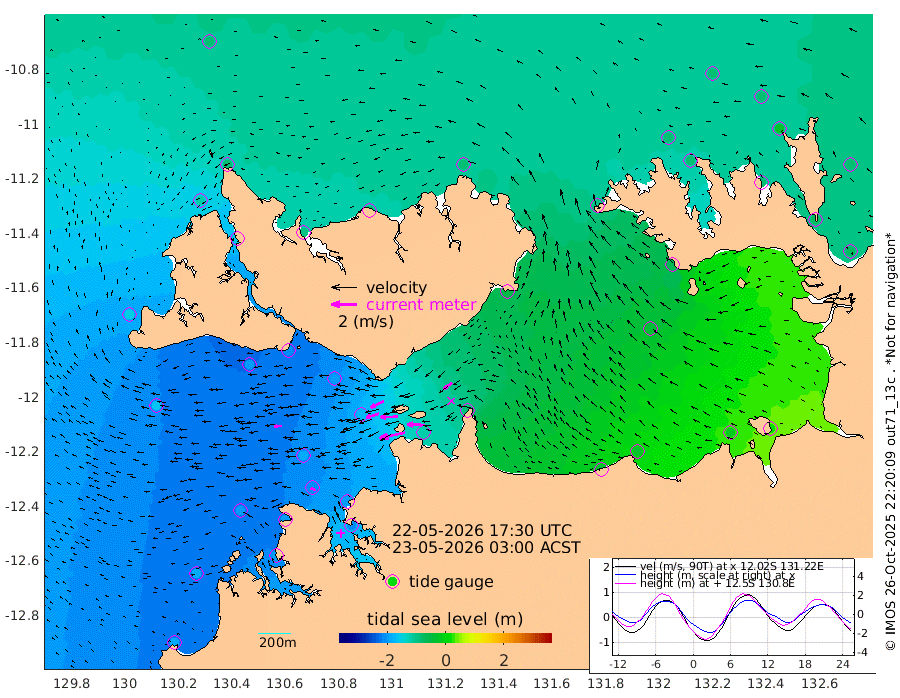 205cm/s -102T +4cm/s rms + 6cm/s 51T. Darwin_C1 52m 139cm/s -89T +4cm/s rms + 7cm/s -161T. Darwin_CW1 22m 102cm/s -108T +4cm/s rms + 8cm/s 61T. Darwin_CW2 34m 82cm/s -126T +3cm/s rms + 9cm/s 98T. Darwin_CW3 22m 137cm/s -91T +5cm/s rms + 7cm/s 88T. Darwin_C3 56m 116cm/s -115T +2cm/s rms + 9cm/s -126T. Darwin_CTbW 22m 59cm/s -93T +1cm/s rms + 1cm/s -47T. DARBGF 30m 45cm/s -66T +4cm/s rms + 3cm/s 80T. NRSDAR 19m -83cm Goodrich Bank -185cm Point Jenny -187cm Native Point -193cm Fish Reef -199cm Tapa Bay -156cm Point Fawcett (Offshore) -200cm Burge Point -202cm Munkunuwa -168cm Beagle A -199cm Parsons Bank -184cm Fenton Patches -179cm Hancox Shoal Area -192cm Nightcliff -211cm Darwin -210cm Charles Point Patches -121cm Glyde Point -35cm Chambers Bay -25cm Point Stuart -85cm Cape Hotham -38cm Christine Reef -17cm West Alligator Head 20cm East Field Island -59cm Two Hills Bay -55cm Camp Point -207cm Medina Inlet South -146cm South Barlow Point -123cm St. Asaph Bay -90cm Cape Van Dieman -100cm Snake Bay -87cm Cache Point -85cm Point Jahleel (Off) -94cm Cape Don -90cm Port Essington -88cm Smith Point - West -81cm NW Peacock Island -82cm North Of Jones Shoal -29cm Peacock Island -75cm Point David -86cm D'urville Point -70cm Copeland Island -81cm One Tree Point