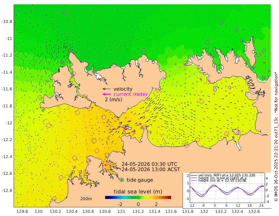 114cm/s 78T +4cm/s rms + 6cm/s 51T. Darwin_C1 52m 72cm/s 92T +4cm/s rms + 7cm/s -161T. Darwin_CW1 22m 66cm/s 71T +4cm/s rms + 8cm/s 61T. Darwin_CW2 34m 62cm/s 49T +3cm/s rms + 9cm/s 98T. Darwin_CW3 22m 95cm/s 90T +5cm/s rms + 7cm/s 88T. Darwin_C3 56m 67cm/s 65T +2cm/s rms + 9cm/s -126T. Darwin_CTbW 22m 8cm/s 50T +1cm/s rms + 1cm/s -47T. DARBGF 30m 7cm/s -6T +4cm/s rms + 3cm/s 80T. NRSDAR 19m -6cm Goodrich Bank 117cm Point Jenny 117cm Native Point 128cm Fish Reef 129cm Tapa Bay 55cm Point Fawcett (Offshore) 145cm Burge Point 118cm Munkunuwa 103cm Beagle A 135cm Parsons Bank 140cm Fenton Patches 133cm Hancox Shoal Area 142cm Nightcliff 152cm Darwin 130cm Charles Point Patches 130cm Glyde Point 129cm Chambers Bay 133cm Point Stuart 119cm Cape Hotham 117cm Christine Reef 147cm West Alligator Head 147cm East Field Island 111cm Two Hills Bay 102cm Camp Point 127cm Medina Inlet South 37cm South Barlow Point 20cm St. Asaph Bay -4cm Cape Van Dieman -1cm Snake Bay 2cm Cache Point 15cm Point Jahleel (Off) 52cm Cape Don 14cm Port Essington 14cm Smith Point - West 9cm NW Peacock Island -2cm North Of Jones Shoal 0cm Peacock Island 17cm Point David 12cm D'urville Point 17cm Copeland Island 18cm One Tree Point