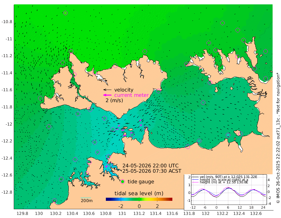 85cm/s -102T +4cm/s rms + 6cm/s 51T. Darwin_C1 52m 48cm/s -90T +4cm/s rms + 7cm/s -161T. Darwin_CW1 22m 41cm/s -107T +4cm/s rms + 8cm/s 61T. Darwin_CW2 34m 51cm/s -134T +3cm/s rms + 9cm/s 98T. Darwin_CW3 22m 66cm/s -91T +5cm/s rms + 7cm/s 88T. Darwin_C3 56m 49cm/s -116T +2cm/s rms + 9cm/s -126T. Darwin_CTbW 22m 4cm/s -141T +1cm/s rms + 1cm/s -47T. DARBGF 30m 5cm/s 177T +4cm/s rms + 3cm/s 80T. NRSDAR 19m 23cm Goodrich Bank -74cm Point Jenny -72cm Native Point -81cm Fish Reef -87cm Tapa Bay -27cm Point Fawcett (Offshore) -92cm Burge Point -77cm Munkunuwa -48cm Beagle A -96cm Parsons Bank -80cm Fenton Patches -96cm Hancox Shoal Area -93cm Nightcliff -107cm Darwin -91cm Charles Point Patches -94cm Glyde Point -101cm Chambers Bay -105cm Point Stuart -90cm Cape Hotham -82cm Christine Reef -114cm West Alligator Head -111cm East Field Island -85cm Two Hills Bay -76cm Camp Point -83cm Medina Inlet South -9cm South Barlow Point 5cm St. Asaph Bay 20cm Cape Van Dieman 16cm Snake Bay 14cm Cache Point 1cm Point Jahleel (Off) -39cm Cape Don -11cm Port Essington -6cm Smith Point - West -7cm NW Peacock Island 4cm North Of Jones Shoal -1cm Peacock Island -35cm Point David -11cm D'urville Point -37cm Copeland Island -31cm One Tree Point