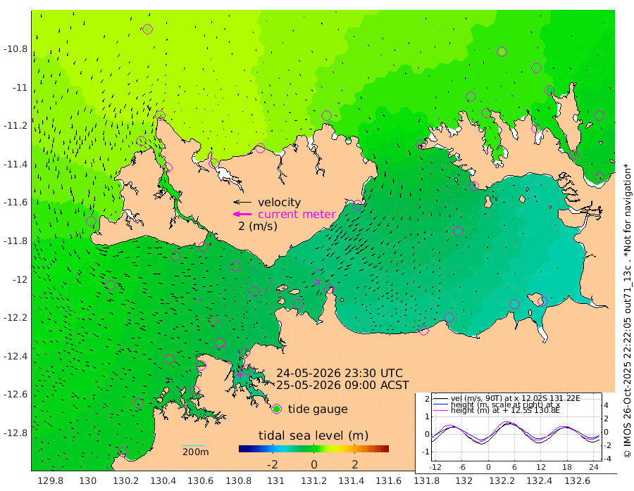 1cm/s 141T +4cm/s rms + 6cm/s 51T. Darwin_C1 52m 3cm/s -52T +4cm/s rms + 7cm/s -161T. Darwin_CW1 22m 6cm/s -107T +4cm/s rms + 8cm/s 61T. Darwin_CW2 34m 22cm/s -148T +3cm/s rms + 9cm/s 98T. Darwin_CW3 22m 22cm/s -89T +5cm/s rms + 7cm/s 88T. Darwin_C3 56m 5cm/s 54T +2cm/s rms + 9cm/s -126T. Darwin_CTbW 22m 25cm/s 97T +1cm/s rms + 1cm/s -47T. DARBGF 30m 27cm/s 125T +4cm/s rms + 3cm/s 80T. NRSDAR 19m 55cm Goodrich Bank -10cm Point Jenny -7cm Native Point -12cm Fish Reef -19cm Tapa Bay 31cm Point Fawcett (Offshore) -28cm Burge Point -6cm Munkunuwa 12cm Beagle A -29cm Parsons Bank -18cm Fenton Patches -37cm Hancox Shoal Area -29cm Nightcliff -38cm Darwin -22cm Charles Point Patches -59cm Glyde Point -98cm Chambers Bay -108cm Point Stuart -68cm Cape Hotham -81cm Christine Reef -121cm West Alligator Head -135cm East Field Island -71cm Two Hills Bay -69cm Camp Point -12cm Medina Inlet South 47cm South Barlow Point 52cm St. Asaph Bay 55cm Cape Van Dieman 56cm Snake Bay 48cm Cache Point 34cm Point Jahleel (Off) -5cm Cape Don 24cm Port Essington 30cm Smith Point - West 26cm NW Peacock Island 37cm North Of Jones Shoal 11cm Peacock Island -5cm Point David 25cm D'urville Point -9cm Copeland Island 0cm One Tree Point