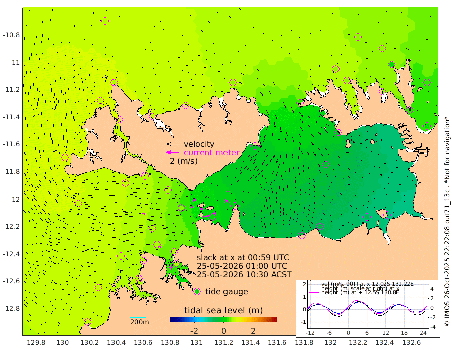 83cm/s 78T +4cm/s rms + 6cm/s 51T. Darwin_C1 52m 41cm/s 91T +4cm/s rms + 7cm/s -161T. Darwin_CW1 22m 37cm/s 74T +4cm/s rms + 8cm/s 61T. Darwin_CW2 34m 25cm/s 59T +3cm/s rms + 9cm/s 98T. Darwin_CW3 22m 41cm/s 89T +5cm/s rms + 7cm/s 88T. Darwin_C3 56m 50cm/s 64T +2cm/s rms + 9cm/s -126T. Darwin_CTbW 22m 43cm/s 92T +1cm/s rms + 1cm/s -47T. DARBGF 30m 44cm/s 119T +4cm/s rms + 3cm/s 80T. NRSDAR 19m 62cm Goodrich Bank 68cm Point Jenny 70cm Native Point 72cm Fish Reef 66cm Tapa Bay 79cm Point Fawcett (Offshore) 60cm Burge Point 75cm Munkunuwa 78cm Beagle A 60cm Parsons Bank 66cm Fenton Patches 46cm Hancox Shoal Area 59cm Nightcliff 57cm Darwin 64cm Charles Point Patches 12cm Glyde Point -41cm Chambers Bay -52cm Point Stuart -6cm Cape Hotham -32cm Christine Reef -62cm West Alligator Head -86cm East Field Island -16cm Two Hills Bay -24cm Camp Point 73cm Medina Inlet South 85cm South Barlow Point 77cm St. Asaph Bay 65cm Cape Van Dieman 69cm Snake Bay 60cm Cache Point 52cm Point Jahleel (Off) 33cm Cape Don 47cm Port Essington 54cm Smith Point - West 47cm NW Peacock Island 51cm North Of Jones Shoal 17cm Peacock Island 23cm Point David 49cm D'urville Point 19cm Copeland Island 29cm One Tree Point