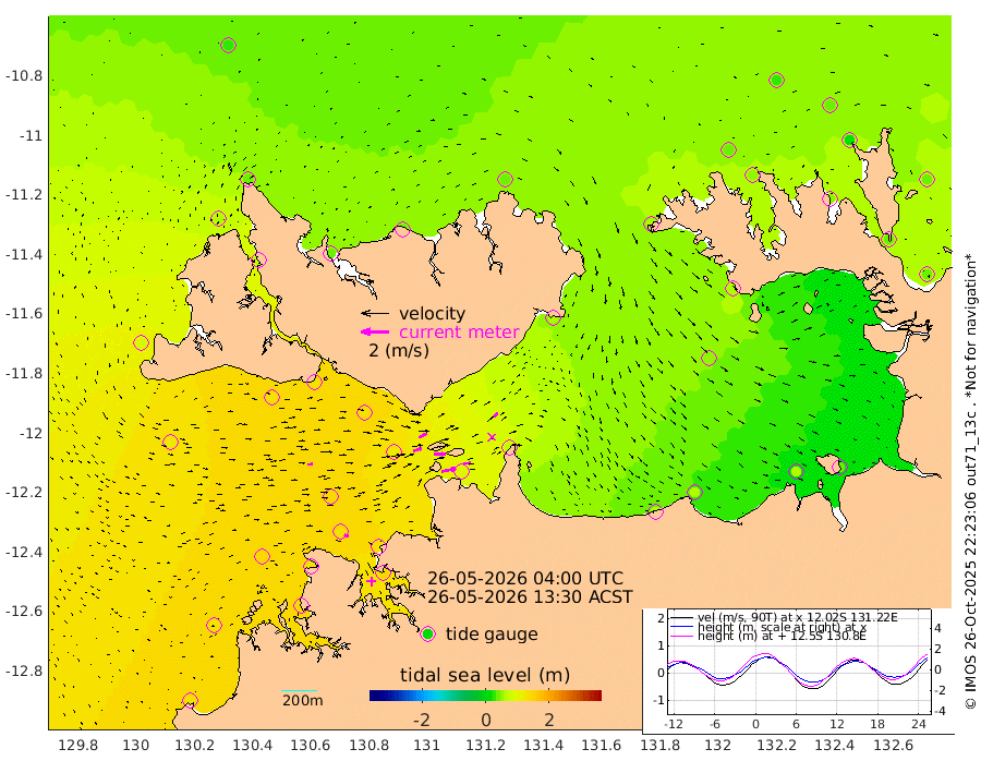 103cm/s 78T +4cm/s rms + 6cm/s 51T. Darwin_C1 52m 56cm/s 90T +4cm/s rms + 7cm/s -161T. Darwin_CW1 22m 61cm/s 73T +4cm/s rms + 8cm/s 61T. Darwin_CW2 34m 43cm/s 52T +3cm/s rms + 9cm/s 98T. Darwin_CW3 22m 80cm/s 89T +5cm/s rms + 7cm/s 88T. Darwin_C3 56m 63cm/s 64T +2cm/s rms + 9cm/s -126T. Darwin_CTbW 22m 34cm/s 87T +1cm/s rms + 1cm/s -47T. DARBGF 30m 29cm/s 114T +4cm/s rms + 3cm/s 80T. NRSDAR 19m 31cm Goodrich Bank 124cm Point Jenny 124cm Native Point 136cm Fish Reef 130cm Tapa Bay 87cm Point Fawcett (Offshore) 138cm Burge Point 125cm Munkunuwa 120cm Beagle A 132cm Parsons Bank 139cm Fenton Patches 121cm Hancox Shoal Area 133cm Nightcliff 142cm Darwin 134cm Charles Point Patches 99cm Glyde Point 62cm Chambers Bay 57cm Point Stuart 78cm Cape Hotham 55cm Christine Reef 58cm West Alligator Head 42cm East Field Island 65cm Two Hills Bay 56cm Camp Point 133cm Medina Inlet South 77cm South Barlow Point 58cm St. Asaph Bay 36cm Cape Van Dieman 41cm Snake Bay 38cm Cache Point 42cm Point Jahleel (Off) 60cm Cape Don 45cm Port Essington 47cm Smith Point - West 42cm NW Peacock Island 33cm North Of Jones Shoal 13cm Peacock Island 41cm Point David 46cm D'urville Point 39cm Copeland Island 43cm One Tree Point