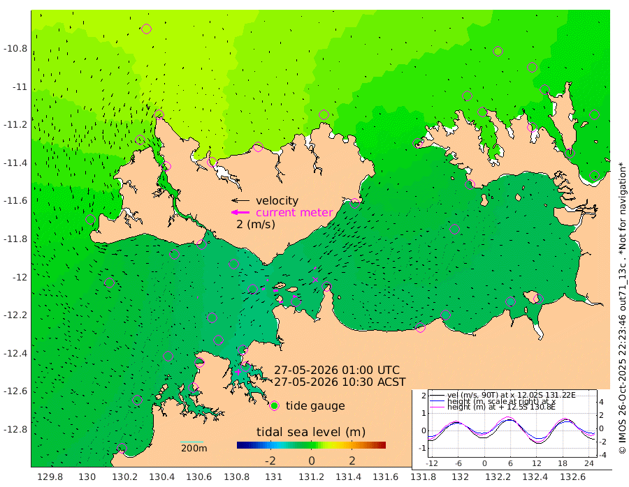 44cm/s -102T +4cm/s rms + 6cm/s 51T. Darwin_C1 52m 38cm/s -89T +4cm/s rms + 7cm/s -161T. Darwin_CW1 22m 29cm/s -106T +4cm/s rms + 8cm/s 61T. Darwin_CW2 34m 30cm/s -137T +3cm/s rms + 9cm/s 98T. Darwin_CW3 22m 51cm/s -91T +5cm/s rms + 7cm/s 88T. Darwin_C3 56m 19cm/s -115T +2cm/s rms + 9cm/s -126T. Darwin_CTbW 22m 6cm/s 116T +1cm/s rms + 1cm/s -47T. DARBGF 30m 9cm/s 144T +4cm/s rms + 3cm/s 80T. NRSDAR 19m 58cm Goodrich Bank -37cm Point Jenny -35cm Native Point -45cm Fish Reef -52cm Tapa Bay 14cm Point Fawcett (Offshore) -59cm Burge Point -49cm Munkunuwa -12cm Beagle A -62cm Parsons Bank -48cm Fenton Patches -65cm Hancox Shoal Area -59cm Nightcliff -71cm Darwin -53cm Charles Point Patches -64cm Glyde Point -74cm Chambers Bay -82cm Point Stuart -63cm Cape Hotham -57cm Christine Reef -92cm West Alligator Head -94cm East Field Island -55cm Two Hills Bay -52cm Camp Point -47cm Medina Inlet South 30cm South Barlow Point 41cm St. Asaph Bay 56cm Cape Van Dieman 57cm Snake Bay 52cm Cache Point 37cm Point Jahleel (Off) 1cm Cape Don 29cm Port Essington 33cm Smith Point - West 33cm NW Peacock Island 45cm North Of Jones Shoal 14cm Peacock Island 5cm Point David 30cm D'urville Point 2cm Copeland Island 12cm One Tree Point