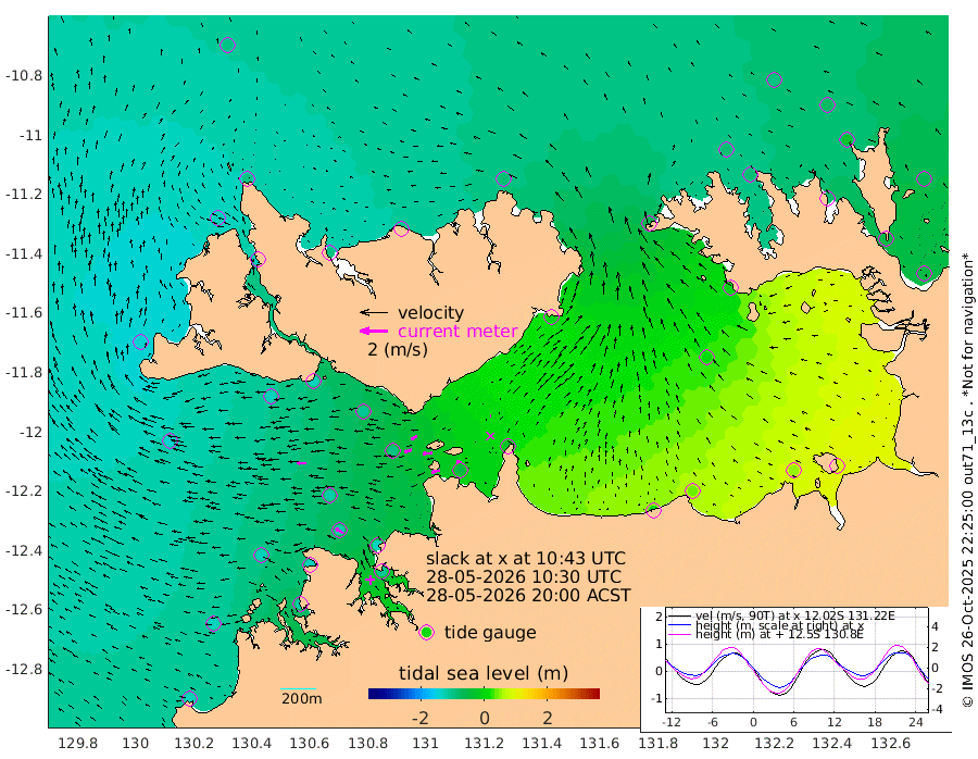 65cm/s -102T +4cm/s rms + 6cm/s 51T. Darwin_C1 52m 33cm/s -88T +4cm/s rms + 7cm/s -161T. Darwin_CW1 22m 55cm/s -107T +4cm/s rms + 8cm/s 61T. Darwin_CW2 34m 10cm/s -96T +3cm/s rms + 9cm/s 98T. Darwin_CW3 22m 65cm/s -93T +5cm/s rms + 7cm/s 88T. Darwin_C3 56m 47cm/s -115T +2cm/s rms + 9cm/s -126T. Darwin_CTbW 22m 66cm/s -89T +1cm/s rms + 1cm/s -47T. DARBGF 30m 63cm/s -57T +4cm/s rms + 3cm/s 80T. NRSDAR 19m -92cm Goodrich Bank -134cm Point Jenny -133cm Native Point -133cm Fish Reef -130cm Tapa Bay -143cm Point Fawcett (Offshore) -119cm Burge Point -126cm Munkunuwa -139cm Beagle A -109cm Parsons Bank -122cm Fenton Patches -100cm Hancox Shoal Area -125cm Nightcliff -108cm Darwin -123cm Charles Point Patches -47cm Glyde Point 11cm Chambers Bay 38cm Point Stuart -26cm Cape Hotham 10cm Christine Reef 51cm West Alligator Head 83cm East Field Island -6cm Two Hills Bay -1cm Camp Point -129cm Medina Inlet South -129cm South Barlow Point -125cm St. Asaph Bay -98cm Cape Van Dieman -101cm Snake Bay -98cm Cache Point -86cm Point Jahleel (Off) -67cm Cape Don -79cm Port Essington -87cm Smith Point - West -78cm NW Peacock Island -90cm North Of Jones Shoal -31cm Peacock Island -55cm Point David -81cm D'urville Point -51cm Copeland Island -63cm One Tree Point