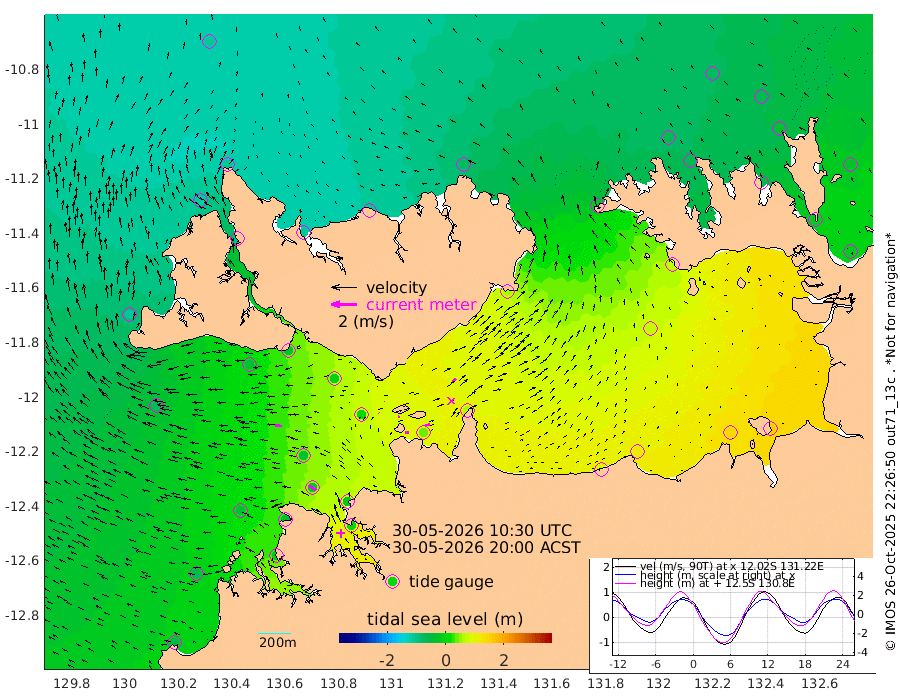 29cm/s 82T +4cm/s rms + 6cm/s 51T. Darwin_C1 52m 40cm/s 90T +4cm/s rms + 7cm/s -161T. Darwin_CW1 22m 3cm/s -34T +4cm/s rms + 8cm/s 61T. Darwin_CW2 34m 40cm/s 42T +3cm/s rms + 9cm/s 98T. Darwin_CW3 22m 16cm/s 97T +5cm/s rms + 7cm/s 88T. Darwin_C3 56m 2cm/s 63T +2cm/s rms + 9cm/s -126T. Darwin_CTbW 22m 56cm/s -85T +1cm/s rms + 1cm/s -47T. DARBGF 30m 66cm/s -55T +4cm/s rms + 3cm/s 80T. NRSDAR 19m -105cm Goodrich Bank -56cm Point Jenny -59cm Native Point -37cm Fish Reef -41cm Tapa Bay -104cm Point Fawcett (Offshore) -18cm Burge Point -42cm Munkunuwa -73cm Beagle A -4cm Parsons Bank -27cm Fenton Patches 1cm Hancox Shoal Area -20cm Nightcliff 10cm Darwin -20cm Charles Point Patches 44cm Glyde Point 90cm Chambers Bay 121cm Point Stuart 58cm Cape Hotham 75cm Christine Reef 138cm West Alligator Head 164cm East Field Island 68cm Two Hills Bay 61cm Camp Point -34cm Medina Inlet South -101cm South Barlow Point -115cm St. Asaph Bay -108cm Cape Van Dieman -105cm Snake Bay -102cm Cache Point -78cm Point Jahleel (Off) -25cm Cape Don -59cm Port Essington -67cm Smith Point - West -60cm NW Peacock Island -79cm North Of Jones Shoal -25cm Peacock Island -20cm Point David -57cm D'urville Point -13cm Copeland Island -25cm One Tree Point
