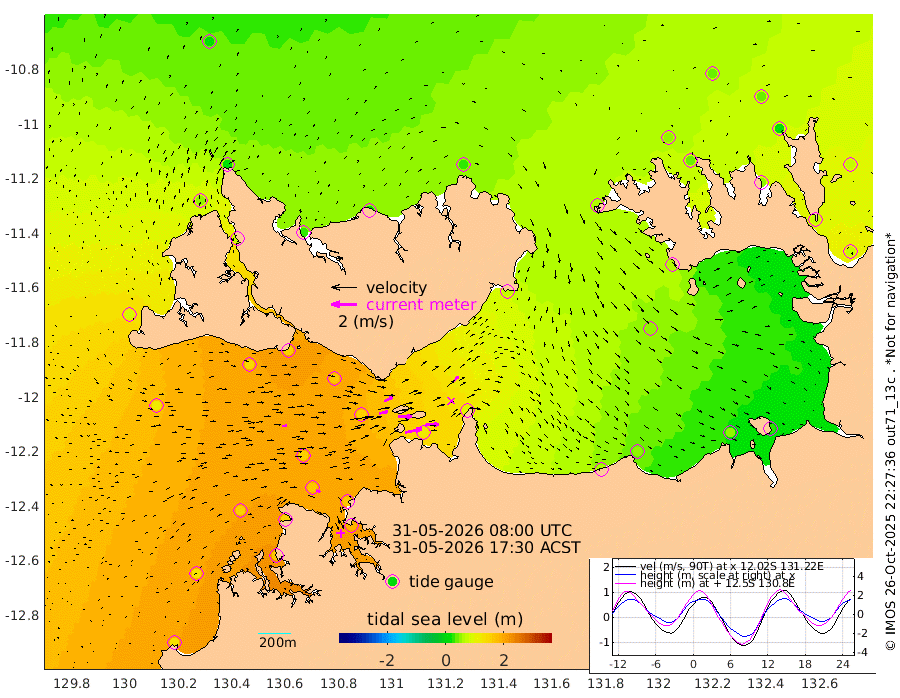 133cm/s 77T +4cm/s rms + 6cm/s 51T. Darwin_C1 52m 110cm/s 88T +4cm/s rms + 7cm/s -161T. Darwin_CW1 22m 69cm/s 75T +4cm/s rms + 8cm/s 61T. Darwin_CW2 34m 66cm/s 45T +3cm/s rms + 9cm/s 98T. Darwin_CW3 22m 107cm/s 89T +5cm/s rms + 7cm/s 88T. Darwin_C3 56m 72cm/s 65T +2cm/s rms + 9cm/s -126T. Darwin_CTbW 22m 34cm/s 86T +1cm/s rms + 1cm/s -47T. DARBGF 30m 33cm/s 110T +4cm/s rms + 3cm/s 80T. NRSDAR 19m 13cm Goodrich Bank 133cm Point Jenny 133cm Native Point 148cm Fish Reef 151cm Tapa Bay 79cm Point Fawcett (Offshore) 162cm Burge Point 146cm Munkunuwa 116cm Beagle A 166cm Parsons Bank 153cm Fenton Patches 155cm Hancox Shoal Area 167cm Nightcliff 183cm Darwin 168cm Charles Point Patches 118cm Glyde Point 59cm Chambers Bay 56cm Point Stuart 92cm Cape Hotham 52cm Christine Reef 52cm West Alligator Head 30cm East Field Island 66cm Two Hills Bay 68cm Camp Point 157cm Medina Inlet South 76cm South Barlow Point 46cm St. Asaph Bay 19cm Cape Van Dieman 32cm Snake Bay 19cm Cache Point 30cm Point Jahleel (Off) 64cm Cape Don 48cm Port Essington 45cm Smith Point - West 45cm NW Peacock Island 34cm North Of Jones Shoal 15cm Peacock Island 69cm Point David 53cm D'urville Point 70cm Copeland Island 68cm One Tree Point
