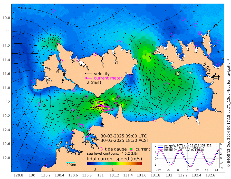 221cm/s 78T +4cm/s rms + 6cm/s 51T. Darwin_C1 52m 172cm/s 90T +4cm/s rms + 7cm/s -161T. Darwin_CW1 22m 135cm/s 74T +4cm/s rms + 8cm/s 61T. Darwin_CW2 34m 113cm/s 46T +3cm/s rms + 9cm/s 98T. Darwin_CW3 22m 198cm/s 89T +5cm/s rms + 7cm/s 88T. Darwin_C3 56m 115cm/s 65T +2cm/s rms + 9cm/s -126T. Darwin_CTbW 22m 62cm/s 85T +1cm/s rms + 1cm/s -47T. DARBGF 30m 61cm/s 112T +4cm/s rms + 3cm/s 80T. NRSDAR 19m 21cm Goodrich Bank 253cm Point Jenny 255cm Native Point 270cm Fish Reef 283cm Tapa Bay 141cm Point Fawcett (Offshore) 308cm Burge Point 285cm Munkunuwa 229cm Beagle A 300cm Parsons Bank 295cm Fenton Patches 279cm Hancox Shoal Area 301cm Nightcliff 319cm Darwin 290cm Charles Point Patches 202cm Glyde Point 103cm Chambers Bay 89cm Point Stuart 154cm Cape Hotham 96cm Christine Reef 87cm West Alligator Head 49cm East Field Island 102cm Two Hills Bay 106cm Camp Point 282cm Medina Inlet South 132cm South Barlow Point 85cm St. Asaph Bay 30cm Cape Van Dieman 42cm Snake Bay 27cm Cache Point 45cm Point Jahleel (Off) 87cm Cape Don 53cm Port Essington 54cm Smith Point - West 47cm NW Peacock Island 24cm North Of Jones Shoal 11cm Peacock Island 66cm Point David 57cm D'urville Point 66cm Copeland Island 60cm One Tree Point