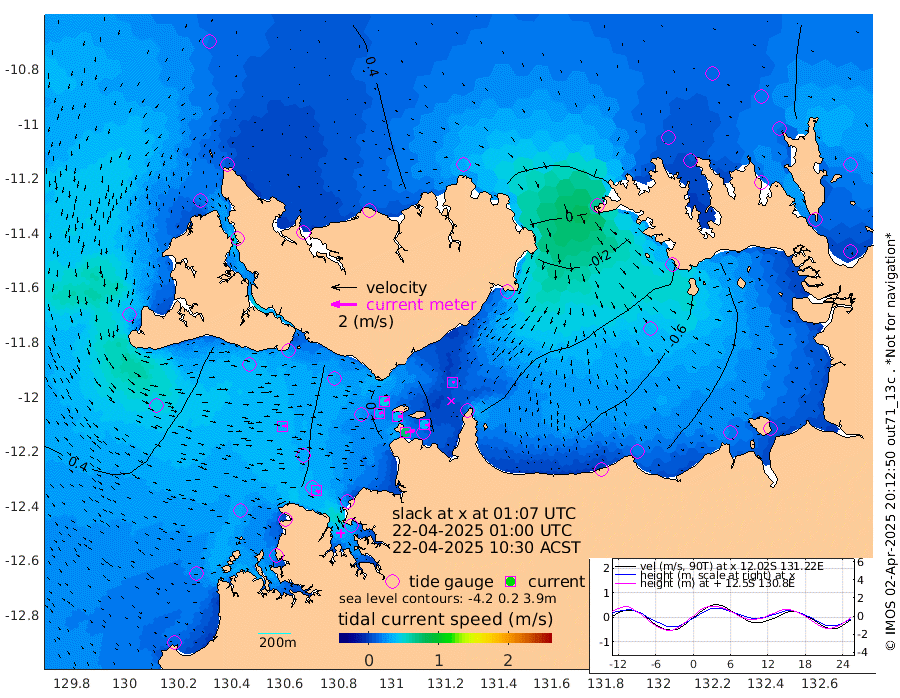 74cm/s 78T +4cm/s rms + 6cm/s 51T. Darwin_C1 52m 39cm/s 93T +4cm/s rms + 7cm/s -161T. Darwin_CW1 22m 31cm/s 72T +4cm/s rms + 8cm/s 61T. Darwin_CW2 34m 17cm/s 74T +3cm/s rms + 9cm/s 98T. Darwin_CW3 22m 35cm/s 88T +5cm/s rms + 7cm/s 88T. Darwin_C3 56m 45cm/s 64T +2cm/s rms + 9cm/s -126T. Darwin_CTbW 22m 33cm/s 91T +1cm/s rms + 1cm/s -47T. DARBGF 30m 32cm/s 118T +4cm/s rms + 3cm/s 80T. NRSDAR 19m 35cm Goodrich Bank 45cm Point Jenny 46cm Native Point 43cm Fish Reef 38cm Tapa Bay 48cm Point Fawcett (Offshore) 42cm Burge Point 59cm Munkunuwa 49cm Beagle A 42cm Parsons Bank 38cm Fenton Patches 25cm Hancox Shoal Area 34cm Nightcliff 26cm Darwin 27cm Charles Point Patches -8cm Glyde Point -53cm Chambers Bay -56cm Point Stuart -20cm Cape Hotham -33cm Christine Reef -62cm West Alligator Head -86cm East Field Island -27cm Two Hills Bay -38cm Camp Point 45cm Medina Inlet South 54cm South Barlow Point 48cm St. Asaph Bay 37cm Cape Van Dieman 38cm Snake Bay 33cm Cache Point 28cm Point Jahleel (Off) 12cm Cape Don 20cm Port Essington 27cm Smith Point - West 21cm NW Peacock Island 24cm North Of Jones Shoal 7cm Peacock Island 0cm Point David 23cm D'urville Point -3cm Copeland Island 4cm One Tree Point