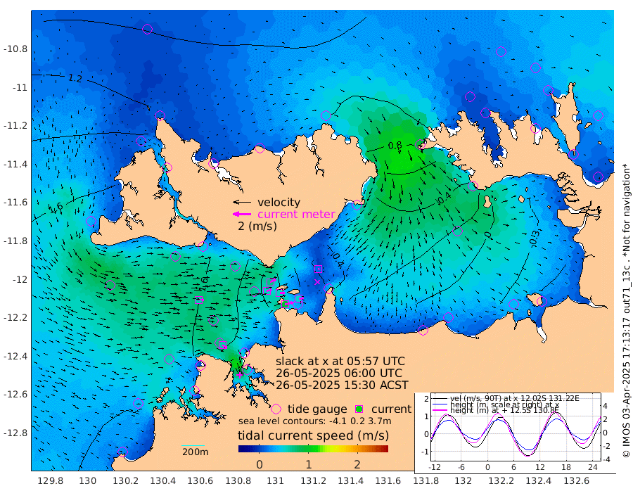 93cm/s 78T +4cm/s rms + 6cm/s 51T. Darwin_C1 52m 53cm/s 83T +4cm/s rms + 7cm/s -161T. Darwin_CW1 22m 55cm/s 75T +4cm/s rms + 8cm/s 61T. Darwin_CW2 34m 15cm/s 75T +3cm/s rms + 9cm/s 98T. Darwin_CW3 22m 56cm/s 87T +5cm/s rms + 7cm/s 88T. Darwin_C3 56m 72cm/s 62T +2cm/s rms + 9cm/s -126T. Darwin_CTbW 22m 62cm/s 92T +1cm/s rms + 1cm/s -47T. DARBGF 30m 61cm/s 122T +4cm/s rms + 3cm/s 80T. NRSDAR 19m 76cm Goodrich Bank 152cm Point Jenny 155cm Native Point 161cm Fish Reef 157cm Tapa Bay 130cm Point Fawcett (Offshore) 161cm Burge Point 157cm Munkunuwa 155cm Beagle A 156cm Parsons Bank 160cm Fenton Patches 133cm Hancox Shoal Area 145cm Nightcliff 156cm Darwin 159cm Charles Point Patches 81cm Glyde Point -8cm Chambers Bay -18cm Point Stuart 50cm Cape Hotham -6cm Christine Reef -33cm West Alligator Head -69cm East Field Island 21cm Two Hills Bay 21cm Camp Point 158cm Medina Inlet South 129cm South Barlow Point 106cm St. Asaph Bay 85cm Cape Van Dieman 92cm Snake Bay 81cm Cache Point 76cm Point Jahleel (Off) 75cm Cape Don 84cm Port Essington 85cm Smith Point - West 82cm NW Peacock Island 71cm North Of Jones Shoal 27cm Peacock Island 83cm Point David 89cm D'urville Point 79cm Copeland Island 80cm One Tree Point