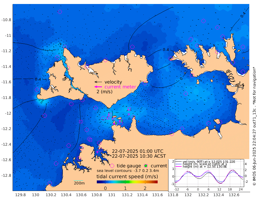 79cm/s -102T +4cm/s rms + 6cm/s 51T. Darwin_C1 52m 67cm/s -89T +4cm/s rms + 7cm/s -161T. Darwin_CW1 22m 31cm/s -110T +4cm/s rms + 8cm/s 61T. Darwin_CW2 34m 36cm/s -133T +3cm/s rms + 9cm/s 98T. Darwin_CW3 22m 39cm/s -91T +5cm/s rms + 7cm/s 88T. Darwin_C3 56m 45cm/s -115T +2cm/s rms + 9cm/s -126T. Darwin_CTbW 22m 6cm/s -95T +1cm/s rms + 1cm/s -47T. DARBGF 30m 8cm/s -82T +4cm/s rms + 3cm/s 80T. NRSDAR 19m 74cm Goodrich Bank -22cm Point Jenny -20cm Native Point -25cm Fish Reef -31cm Tapa Bay 32cm Point Fawcett (Offshore) -36cm Burge Point -37cm Munkunuwa -5cm Beagle A -40cm Parsons Bank -35cm Fenton Patches -39cm Hancox Shoal Area -43cm Nightcliff -35cm Darwin -15cm Charles Point Patches -27cm Glyde Point -26cm Chambers Bay -33cm Point Stuart -25cm Cape Hotham -23cm Christine Reef -41cm West Alligator Head -36cm East Field Island -15cm Two Hills Bay -9cm Camp Point -23cm Medina Inlet South 42cm South Barlow Point 53cm St. Asaph Bay 70cm Cape Van Dieman 73cm Snake Bay 69cm Cache Point 55cm Point Jahleel (Off) 27cm Cape Don 53cm Port Essington 50cm Smith Point - West 53cm NW Peacock Island 66cm North Of Jones Shoal 21cm Peacock Island 34cm Point David 48cm D'urville Point 29cm Copeland Island 42cm One Tree Point
