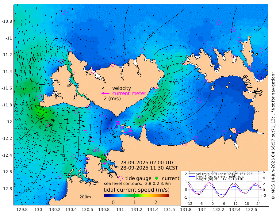 38cm/s 81T +4cm/s rms + 6cm/s 51T. Darwin_C1 52m 28cm/s 90T +4cm/s rms + 7cm/s -161T. Darwin_CW1 22m 6cm/s 47T +4cm/s rms + 8cm/s 61T. Darwin_CW2 34m 40cm/s 43T +3cm/s rms + 9cm/s 98T. Darwin_CW3 22m 29cm/s 93T +5cm/s rms + 7cm/s 88T. Darwin_C3 56m 18cm/s 65T +2cm/s rms + 9cm/s -126T. Darwin_CTbW 22m 52cm/s -85T +1cm/s rms + 1cm/s -47T. DARBGF 30m 64cm/s -54T +4cm/s rms + 3cm/s 80T. NRSDAR 19m -91cm Goodrich Bank -58cm Point Jenny -62cm Native Point -45cm Fish Reef -45cm Tapa Bay -90cm Point Fawcett (Offshore) -35cm Burge Point -55cm Munkunuwa -76cm Beagle A -13cm Parsons Bank -40cm Fenton Patches -2cm Hancox Shoal Area -12cm Nightcliff -1cm Darwin -30cm Charles Point Patches 43cm Glyde Point 110cm Chambers Bay 132cm Point Stuart 66cm Cape Hotham 90cm Christine Reef 152cm West Alligator Head 177cm East Field Island 85cm Two Hills Bay 68cm Camp Point -40cm Medina Inlet South -91cm South Barlow Point -101cm St. Asaph Bay -94cm Cape Van Dieman -85cm Snake Bay -83cm Cache Point -60cm Point Jahleel (Off) -8cm Cape Don -43cm Port Essington -46cm Smith Point - West -39cm NW Peacock Island -50cm North Of Jones Shoal -15cm Peacock Island 2cm Point David -37cm D'urville Point 8cm Copeland Island 0cm One Tree Point