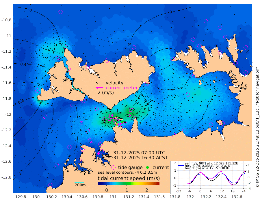 132cm/s 78T +4cm/s rms + 6cm/s 51T. Darwin_C1 52m 115cm/s 92T +4cm/s rms + 7cm/s -161T. Darwin_CW1 22m 69cm/s 73T +4cm/s rms + 8cm/s 61T. Darwin_CW2 34m 73cm/s 44T +3cm/s rms + 9cm/s 98T. Darwin_CW3 22m 115cm/s 90T +5cm/s rms + 7cm/s 88T. Darwin_C3 56m 69cm/s 66T +2cm/s rms + 9cm/s -126T. Darwin_CTbW 22m 18cm/s 72T +1cm/s rms + 1cm/s -47T. DARBGF 30m 12cm/s 95T +4cm/s rms + 3cm/s 80T. NRSDAR 19m -3cm Goodrich Bank 153cm Point Jenny 149cm Native Point 151cm Fish Reef 165cm Tapa Bay 75cm Point Fawcett (Offshore) 176cm Burge Point 142cm Munkunuwa 132cm Beagle A 159cm Parsons Bank 173cm Fenton Patches 170cm Hancox Shoal Area 185cm Nightcliff 177cm Darwin 163cm Charles Point Patches 143cm Glyde Point 137cm Chambers Bay 127cm Point Stuart 127cm Cape Hotham 135cm Christine Reef 139cm West Alligator Head 136cm East Field Island 108cm Two Hills Bay 110cm Camp Point 150cm Medina Inlet South 48cm South Barlow Point 36cm St. Asaph Bay -2cm Cape Van Dieman -5cm Snake Bay 8cm Cache Point 20cm Point Jahleel (Off) 56cm Cape Don 16cm Port Essington 21cm Smith Point - West 14cm NW Peacock Island 6cm North Of Jones Shoal 2cm Peacock Island 18cm Point David 17cm D'urville Point 22cm Copeland Island 19cm One Tree Point