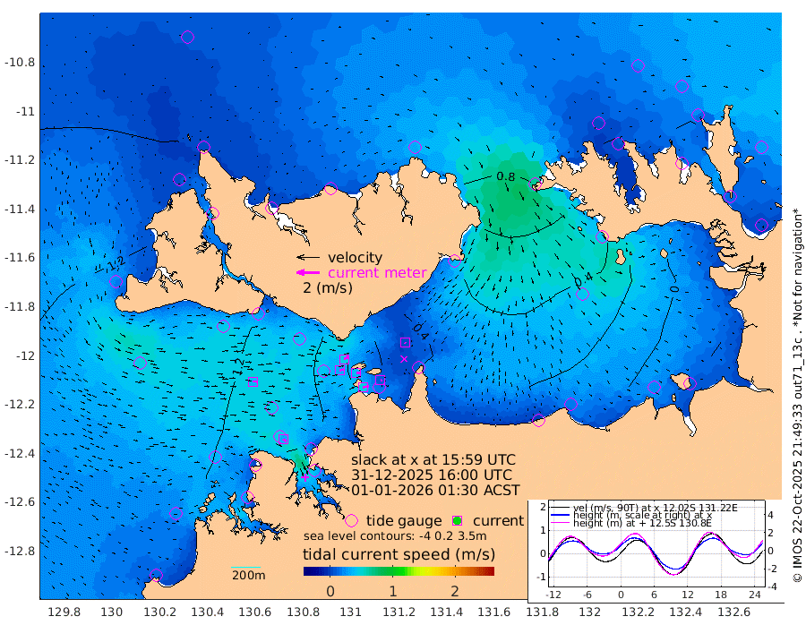 48cm/s 78T +4cm/s rms + 6cm/s 51T. Darwin_C1 52m 11cm/s 75T +4cm/s rms + 7cm/s -161T. Darwin_CW1 22m 33cm/s 75T +4cm/s rms + 8cm/s 61T. Darwin_CW2 34m 3cm/s 136T +3cm/s rms + 9cm/s 98T. Darwin_CW3 22m 35cm/s 88T +5cm/s rms + 7cm/s 88T. Darwin_C3 56m 45cm/s 62T +2cm/s rms + 9cm/s -126T. Darwin_CTbW 22m 37cm/s 92T +1cm/s rms + 1cm/s -47T. DARBGF 30m 35cm/s 123T +4cm/s rms + 3cm/s 80T. NRSDAR 19m 65cm Goodrich Bank 96cm Point Jenny 99cm Native Point 103cm Fish Reef 98cm Tapa Bay 90cm Point Fawcett (Offshore) 100cm Burge Point 94cm Munkunuwa 100cm Beagle A 101cm Parsons Bank 99cm Fenton Patches 86cm Hancox Shoal Area 88cm Nightcliff 100cm Darwin 103cm Charles Point Patches 60cm Glyde Point 9cm Chambers Bay 7cm Point Stuart 44cm Cape Hotham 10cm Christine Reef -3cm West Alligator Head -24cm East Field Island 32cm Two Hills Bay 25cm Camp Point 100cm Medina Inlet South 91cm South Barlow Point 76cm St. Asaph Bay 70cm Cape Van Dieman 77cm Snake Bay 70cm Cache Point 66cm Point Jahleel (Off) 66cm Cape Don 75cm Port Essington 76cm Smith Point - West 76cm NW Peacock Island 65cm North Of Jones Shoal 24cm Peacock Island 80cm Point David 81cm D'urville Point 77cm Copeland Island 78cm One Tree Point