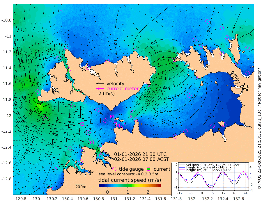 12cm/s 87T +4cm/s rms + 6cm/s 51T. Darwin_C1 52m 33cm/s 91T +4cm/s rms + 7cm/s -161T. Darwin_CW1 22m 7cm/s -73T +4cm/s rms + 8cm/s 61T. Darwin_CW2 34m 36cm/s 38T +3cm/s rms + 9cm/s 98T. Darwin_CW3 22m 3cm/s 115T +5cm/s rms + 7cm/s 88T. Darwin_C3 56m 6cm/s -113T +2cm/s rms + 9cm/s -126T. Darwin_CTbW 22m 58cm/s -86T +1cm/s rms + 1cm/s -47T. DARBGF 30m 65cm/s -56T +4cm/s rms + 3cm/s 80T. NRSDAR 19m -118cm Goodrich Bank -61cm Point Jenny -61cm Native Point -53cm Fish Reef -42cm Tapa Bay -121cm Point Fawcett (Offshore) -24cm Burge Point -50cm Munkunuwa -77cm Beagle A -13cm Parsons Bank -26cm Fenton Patches 0cm Hancox Shoal Area -13cm Nightcliff -1cm Darwin -33cm Charles Point Patches 36cm Glyde Point 83cm Chambers Bay 107cm Point Stuart 49cm Cape Hotham 71cm Christine Reef 125cm West Alligator Head 153cm East Field Island 53cm Two Hills Bay 59cm Camp Point -46cm Medina Inlet South -115cm South Barlow Point -127cm St. Asaph Bay -121cm Cape Van Dieman -116cm Snake Bay -117cm Cache Point -91cm Point Jahleel (Off) -43cm Cape Don -78cm Port Essington -84cm Smith Point - West -75cm NW Peacock Island -97cm North Of Jones Shoal -31cm Peacock Island -27cm Point David -72cm D'urville Point -20cm Copeland Island -40cm One Tree Point