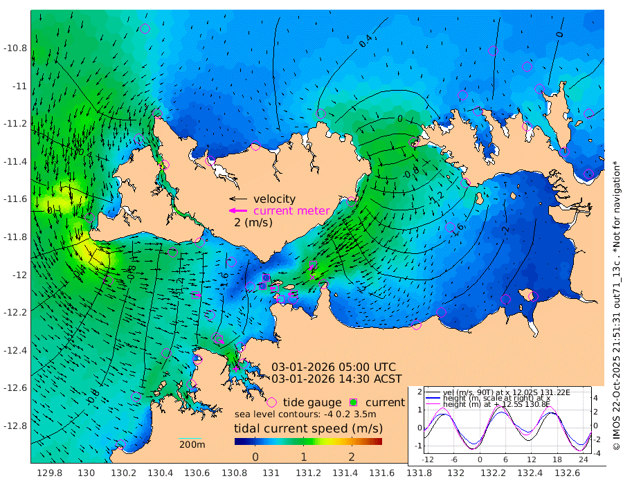 45cm/s -101T +4cm/s rms + 6cm/s 51T. Darwin_C1 52m 67cm/s -94T +4cm/s rms + 7cm/s -161T. Darwin_CW1 22m 9cm/s -102T +4cm/s rms + 8cm/s 61T. Darwin_CW2 34m 76cm/s -143T +3cm/s rms + 9cm/s 98T. Darwin_CW3 22m 55cm/s -88T +5cm/s rms + 7cm/s 88T. Darwin_C3 56m 4cm/s -109T +2cm/s rms + 9cm/s -126T. Darwin_CTbW 22m 64cm/s 98T +1cm/s rms + 1cm/s -47T. DARBGF 30m 73cm/s 127T +4cm/s rms + 3cm/s 80T. NRSDAR 19m 51cm Goodrich Bank -43cm Point Jenny -42cm Native Point -52cm Fish Reef -67cm Tapa Bay 32cm Point Fawcett (Offshore) -95cm Burge Point -31cm Munkunuwa -24cm Beagle A -91cm Parsons Bank -86cm Fenton Patches -111cm Hancox Shoal Area -99cm Nightcliff -126cm Darwin -97cm Charles Point Patches -149cm Glyde Point -203cm Chambers Bay -221cm Point Stuart -156cm Cape Hotham -187cm Christine Reef -243cm West Alligator Head -279cm East Field Island -159cm Two Hills Bay -169cm Camp Point -61cm Medina Inlet South 39cm South Barlow Point 55cm St. Asaph Bay 56cm Cape Van Dieman 49cm Snake Bay 44cm Cache Point 19cm Point Jahleel (Off) -45cm Cape Don 4cm Port Essington 13cm Smith Point - West 4cm NW Peacock Island 25cm North Of Jones Shoal 6cm Peacock Island -40cm Point David 3cm D'urville Point -45cm Copeland Island -34cm One Tree Point