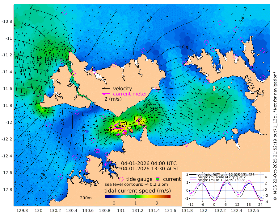 225cm/s -101T +4cm/s rms + 6cm/s 51T. Darwin_C1 52m 192cm/s -91T +4cm/s rms + 7cm/s -161T. Darwin_CW1 22m 102cm/s -106T +4cm/s rms + 8cm/s 61T. Darwin_CW2 34m 125cm/s -136T +3cm/s rms + 9cm/s 98T. Darwin_CW3 22m 174cm/s -90T +5cm/s rms + 7cm/s 88T. Darwin_C3 56m 122cm/s -116T +2cm/s rms + 9cm/s -126T. Darwin_CTbW 22m 14cm/s -132T +1cm/s rms + 1cm/s -47T. DARBGF 30m 10cm/s -163T +4cm/s rms + 3cm/s 80T. NRSDAR 19m -13cm Goodrich Bank -243cm Point Jenny -241cm Native Point -259cm Fish Reef -276cm Tapa Bay -124cm Point Fawcett (Offshore) -308cm Burge Point -243cm Munkunuwa -209cm Beagle A -294cm Parsons Bank -288cm Fenton Patches -295cm Hancox Shoal Area -303cm Nightcliff -335cm Darwin -304cm Charles Point Patches -267cm Glyde Point -237cm Chambers Bay -239cm Point Stuart -239cm Cape Hotham -222cm Christine Reef -254cm West Alligator Head -249cm East Field Island -209cm Two Hills Bay -213cm Camp Point -270cm Medina Inlet South -99cm South Barlow Point -61cm St. Asaph Bay -17cm Cape Van Dieman -27cm Snake Bay -28cm Cache Point -52cm Point Jahleel (Off) -126cm Cape Don -68cm Port Essington -62cm Smith Point - West -62cm NW Peacock Island -38cm North Of Jones Shoal -16cm Peacock Island -97cm Point David -68cm D'urville Point -99cm Copeland Island -95cm One Tree Point
