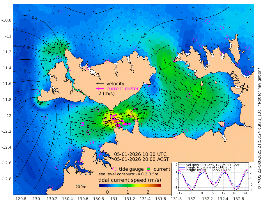 263cm/s 78T +4cm/s rms + 6cm/s 51T. Darwin_C1 52m 198cm/s 93T +4cm/s rms + 7cm/s -161T. Darwin_CW1 22m 148cm/s 72T +4cm/s rms + 8cm/s 61T. Darwin_CW2 34m 139cm/s 46T +3cm/s rms + 9cm/s 98T. Darwin_CW3 22m 219cm/s 89T +5cm/s rms + 7cm/s 88T. Darwin_C3 56m 135cm/s 66T +2cm/s rms + 9cm/s -126T. Darwin_CTbW 22m 51cm/s 80T +1cm/s rms + 1cm/s -47T. DARBGF 30m 40cm/s 107T +4cm/s rms + 3cm/s 80T. NRSDAR 19m 19cm Goodrich Bank 260cm Point Jenny 259cm Native Point 277cm Fish Reef 289cm Tapa Bay 149cm Point Fawcett (Offshore) 311cm Burge Point 283cm Munkunuwa 232cm Beagle A 296cm Parsons Bank 298cm Fenton Patches 285cm Hancox Shoal Area 308cm Nightcliff 323cm Darwin 294cm Charles Point Patches 224cm Glyde Point 160cm Chambers Bay 149cm Point Stuart 184cm Cape Hotham 150cm Christine Reef 160cm West Alligator Head 133cm East Field Island 144cm Two Hills Bay 140cm Camp Point 286cm Medina Inlet South 123cm South Barlow Point 87cm St. Asaph Bay 25cm Cape Van Dieman 31cm Snake Bay 29cm Cache Point 47cm Point Jahleel (Off) 94cm Cape Don 44cm Port Essington 46cm Smith Point - West 34cm NW Peacock Island 22cm North Of Jones Shoal 8cm Peacock Island 37cm Point David 41cm D'urville Point 37cm Copeland Island 40cm One Tree Point