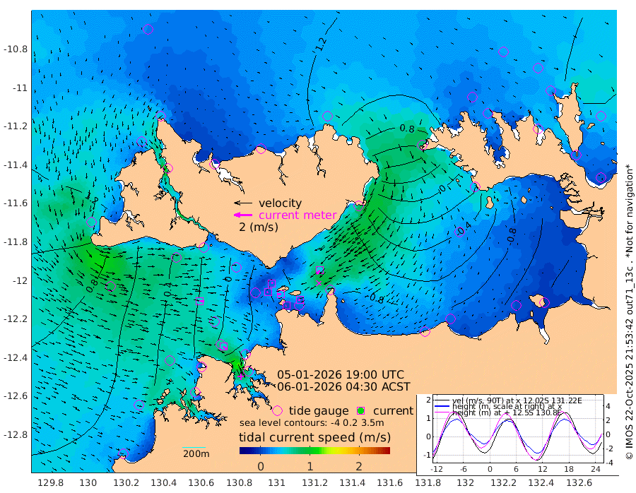 5cm/s -110T +4cm/s rms + 6cm/s 51T. Darwin_C1 52m 15cm/s -79T +4cm/s rms + 7cm/s -161T. Darwin_CW1 22m 11cm/s -114T +4cm/s rms + 8cm/s 61T. Darwin_CW2 34m 48cm/s -143T +3cm/s rms + 9cm/s 98T. Darwin_CW3 22m 39cm/s -90T +5cm/s rms + 7cm/s 88T. Darwin_C3 56m 16cm/s 58T +2cm/s rms + 9cm/s -126T. Darwin_CTbW 22m 51cm/s 97T +1cm/s rms + 1cm/s -47T. DARBGF 30m 53cm/s 129T +4cm/s rms + 3cm/s 80T. NRSDAR 19m 101cm Goodrich Bank 33cm Point Jenny 36cm Native Point 27cm Fish Reef 21cm Tapa Bay 92cm Point Fawcett (Offshore) 2cm Burge Point 24cm Munkunuwa 44cm Beagle A 1cm Parsons Bank 0cm Fenton Patches -14cm Hancox Shoal Area -9cm Nightcliff -9cm Darwin 22cm Charles Point Patches -47cm Glyde Point -114cm Chambers Bay -126cm Point Stuart -62cm Cape Hotham -100cm Christine Reef -151cm West Alligator Head -180cm East Field Island -71cm Two Hills Bay -63cm Camp Point 26cm Medina Inlet South 96cm South Barlow Point 101cm St. Asaph Bay 106cm Cape Van Dieman 108cm Snake Bay 99cm Cache Point 75cm Point Jahleel (Off) 37cm Cape Don 81cm Port Essington 79cm Smith Point - West 78cm NW Peacock Island 92cm North Of Jones Shoal 32cm Peacock Island 63cm Point David 79cm D'urville Point 57cm Copeland Island 67cm One Tree Point