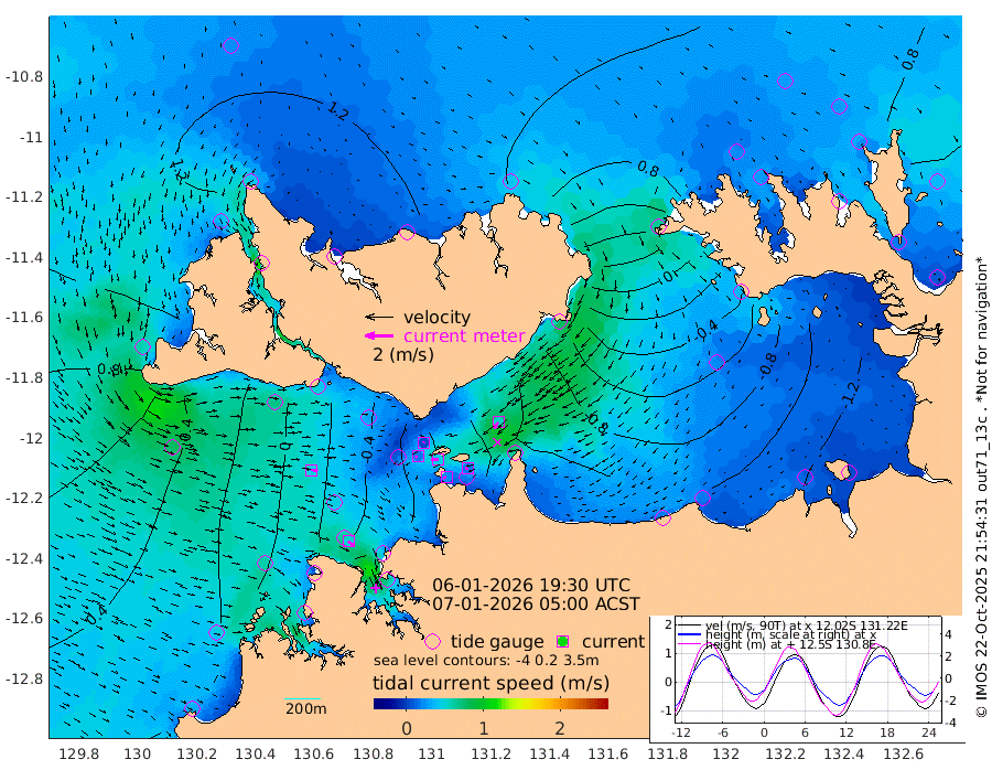 22cm/s -103T +4cm/s rms + 6cm/s 51T. Darwin_C1 52m 19cm/s -85T +4cm/s rms + 7cm/s -161T. Darwin_CW1 22m 18cm/s -110T +4cm/s rms + 8cm/s 61T. Darwin_CW2 34m 54cm/s -142T +3cm/s rms + 9cm/s 98T. Darwin_CW3 22m 48cm/s -90T +5cm/s rms + 7cm/s 88T. Darwin_C3 56m 4cm/s 44T +2cm/s rms + 9cm/s -126T. Darwin_CTbW 22m 47cm/s 98T +1cm/s rms + 1cm/s -47T. DARBGF 30m 50cm/s 130T +4cm/s rms + 3cm/s 80T. NRSDAR 19m 92cm Goodrich Bank 8cm Point Jenny 11cm Native Point -3cm Fish Reef -5cm Tapa Bay 73cm Point Fawcett (Offshore) -27cm Burge Point 2cm Munkunuwa 19cm Beagle A -28cm Parsons Bank -29cm Fenton Patches -41cm Hancox Shoal Area -36cm Nightcliff -41cm Darwin -8cm Charles Point Patches -73cm Glyde Point -135cm Chambers Bay -148cm Point Stuart -86cm Cape Hotham -120cm Christine Reef -173cm West Alligator Head -200cm East Field Island -93cm Two Hills Bay -82cm Camp Point -1cm Medina Inlet South 80cm South Barlow Point 89cm St. Asaph Bay 97cm Cape Van Dieman 98cm Snake Bay 87cm Cache Point 63cm Point Jahleel (Off) 19cm Cape Don 65cm Port Essington 62cm Smith Point - West 62cm NW Peacock Island 79cm North Of Jones Shoal 27cm Peacock Island 45cm Point David 62cm D'urville Point 38cm Copeland Island 48cm One Tree Point