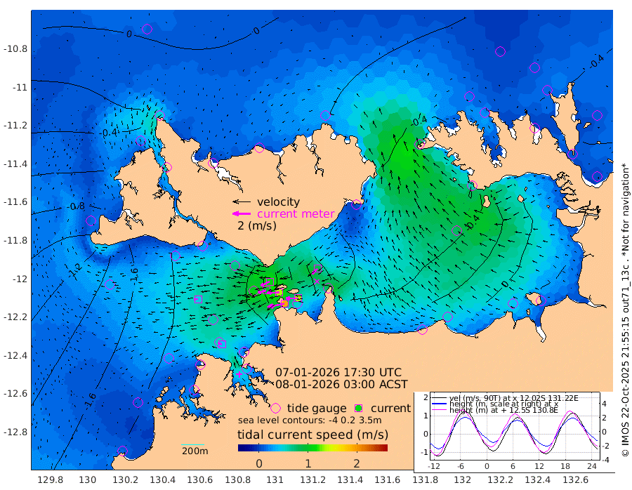 194cm/s -101T +4cm/s rms + 6cm/s 51T. Darwin_C1 52m 136cm/s -90T +4cm/s rms + 7cm/s -161T. Darwin_CW1 22m 97cm/s -106T +4cm/s rms + 8cm/s 61T. Darwin_CW2 34m 84cm/s -134T +3cm/s rms + 9cm/s 98T. Darwin_CW3 22m 134cm/s -91T +5cm/s rms + 7cm/s 88T. Darwin_C3 56m 108cm/s -115T +2cm/s rms + 9cm/s -126T. Darwin_CTbW 22m 48cm/s -93T +1cm/s rms + 1cm/s -47T. DARBGF 30m 43cm/s -69T +4cm/s rms + 3cm/s 80T. NRSDAR 19m 9cm Goodrich Bank -159cm Point Jenny -156cm Native Point -180cm Fish Reef -181cm Tapa Bay -84cm Point Fawcett (Offshore) -192cm Burge Point -184cm Munkunuwa -140cm Beagle A -200cm Parsons Bank -188cm Fenton Patches -189cm Hancox Shoal Area -199cm Nightcliff -210cm Darwin -189cm Charles Point Patches -135cm Glyde Point -81cm Chambers Bay -72cm Point Stuart -110cm Cape Hotham -69cm Christine Reef -74cm West Alligator Head -47cm East Field Island -79cm Two Hills Bay -64cm Camp Point -183cm Medina Inlet South -72cm South Barlow Point -40cm St. Asaph Bay 2cm Cape Van Dieman -4cm Snake Bay -1cm Cache Point -18cm Point Jahleel (Off) -55cm Cape Don -29cm Port Essington -35cm Smith Point - West -28cm NW Peacock Island -12cm North Of Jones Shoal -7cm Peacock Island -41cm Point David -38cm D'urville Point -46cm Copeland Island -40cm One Tree Point