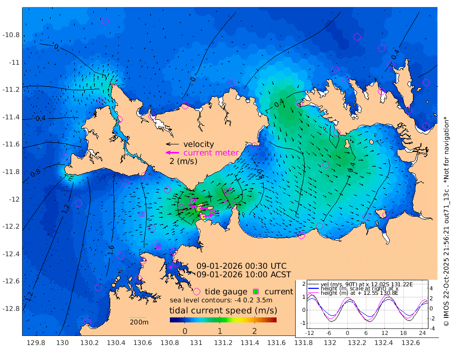 156cm/s 78T +4cm/s rms + 6cm/s 51T. Darwin_C1 52m 101cm/s 93T +4cm/s rms + 7cm/s -161T. Darwin_CW1 22m 85cm/s 73T +4cm/s rms + 8cm/s 61T. Darwin_CW2 34m 85cm/s 45T +3cm/s rms + 9cm/s 98T. Darwin_CW3 22m 131cm/s 89T +5cm/s rms + 7cm/s 88T. Darwin_C3 56m 74cm/s 66T +2cm/s rms + 9cm/s -126T. Darwin_CTbW 22m 27cm/s 82T +1cm/s rms + 1cm/s -47T. DARBGF 30m 20cm/s 101T +4cm/s rms + 3cm/s 80T. NRSDAR 19m -18cm Goodrich Bank 118cm Point Jenny 115cm Native Point 134cm Fish Reef 143cm Tapa Bay 60cm Point Fawcett (Offshore) 145cm Burge Point 142cm Munkunuwa 84cm Beagle A 164cm Parsons Bank 129cm Fenton Patches 158cm Hancox Shoal Area 157cm Nightcliff 176cm Darwin 156cm Charles Point Patches 118cm Glyde Point 90cm Chambers Bay 85cm Point Stuart 105cm Cape Hotham 69cm Christine Reef 88cm West Alligator Head 66cm East Field Island 84cm Two Hills Bay 70cm Camp Point 145cm Medina Inlet South 45cm South Barlow Point 19cm St. Asaph Bay -12cm Cape Van Dieman -3cm Snake Bay -8cm Cache Point 9cm Point Jahleel (Off) 53cm Cape Don 29cm Port Essington 28cm Smith Point - West 27cm NW Peacock Island 14cm North Of Jones Shoal 8cm Peacock Island 59cm Point David 35cm D'urville Point 63cm Copeland Island 56cm One Tree Point