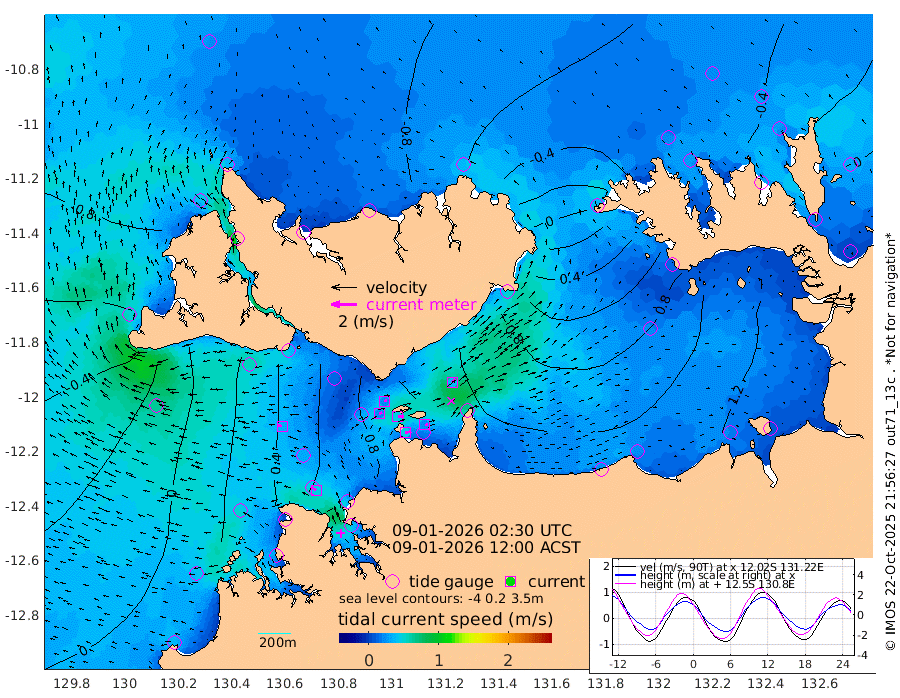 45cm/s 81T +4cm/s rms + 6cm/s 51T. Darwin_C1 52m 25cm/s 88T +4cm/s rms + 7cm/s -161T. Darwin_CW1 22m 23cm/s 69T +4cm/s rms + 8cm/s 61T. Darwin_CW2 34m 37cm/s 44T +3cm/s rms + 9cm/s 98T. Darwin_CW3 22m 46cm/s 90T +5cm/s rms + 7cm/s 88T. Darwin_C3 56m 22cm/s 66T +2cm/s rms + 9cm/s -126T. Darwin_CTbW 22m 34cm/s -82T +1cm/s rms + 1cm/s -47T. DARBGF 30m 48cm/s -52T +4cm/s rms + 3cm/s 80T. NRSDAR 19m -81cm Goodrich Bank 5cm Point Jenny -1cm Native Point 19cm Fish Reef 21cm Tapa Bay -47cm Point Fawcett (Offshore) 32cm Burge Point 9cm Munkunuwa -21cm Beagle A 47cm Parsons Bank 23cm Fenton Patches 59cm Hancox Shoal Area 46cm Nightcliff 58cm Darwin 31cm Charles Point Patches 82cm Glyde Point 137cm Chambers Bay 153cm Point Stuart 100cm Cape Hotham 114cm Christine Reef 173cm West Alligator Head 189cm East Field Island 107cm Two Hills Bay 87cm Camp Point 18cm Medina Inlet South -63cm South Barlow Point -73cm St. Asaph Bay -82cm Cape Van Dieman -80cm Snake Bay -68cm Cache Point -45cm Point Jahleel (Off) 10cm Cape Don -30cm Port Essington -31cm Smith Point - West -27cm NW Peacock Island -42cm North Of Jones Shoal -12cm Peacock Island 10cm Point David -24cm D'urville Point 19cm Copeland Island 7cm One Tree Point