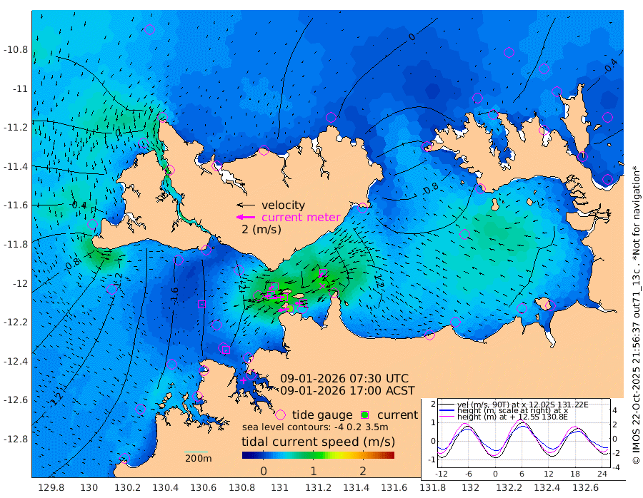 128cm/s -101T +4cm/s rms + 6cm/s 51T. Darwin_C1 52m 86cm/s -91T +4cm/s rms + 7cm/s -161T. Darwin_CW1 22m 68cm/s -106T +4cm/s rms + 8cm/s 61T. Darwin_CW2 34m 71cm/s -134T +3cm/s rms + 9cm/s 98T. Darwin_CW3 22m 120cm/s -91T +5cm/s rms + 7cm/s 88T. Darwin_C3 56m 67cm/s -116T +2cm/s rms + 9cm/s -126T. Darwin_CTbW 22m 6cm/s 164T +1cm/s rms + 1cm/s -47T. DARBGF 30m 13cm/s 163T +4cm/s rms + 3cm/s 80T. NRSDAR 19m 34cm Goodrich Bank -101cm Point Jenny -101cm Native Point -118cm Fish Reef -129cm Tapa Bay -32cm Point Fawcett (Offshore) -138cm Burge Point -121cm Munkunuwa -66cm Beagle A -151cm Parsons Bank -121cm Fenton Patches -150cm Hancox Shoal Area -143cm Nightcliff -173cm Darwin -145cm Charles Point Patches -139cm Glyde Point -138cm Chambers Bay -145cm Point Stuart -129cm Cape Hotham -114cm Christine Reef -158cm West Alligator Head -152cm East Field Island -119cm Two Hills Bay -108cm Camp Point -130cm Medina Inlet South -17cm South Barlow Point 9cm St. Asaph Bay 31cm Cape Van Dieman 22cm Snake Bay 26cm Cache Point 4cm Point Jahleel (Off) -51cm Cape Don -12cm Port Essington -6cm Smith Point - West -7cm NW Peacock Island 10cm North Of Jones Shoal 1cm Peacock Island -43cm Point David -13cm D'urville Point -45cm Copeland Island -39cm One Tree Point