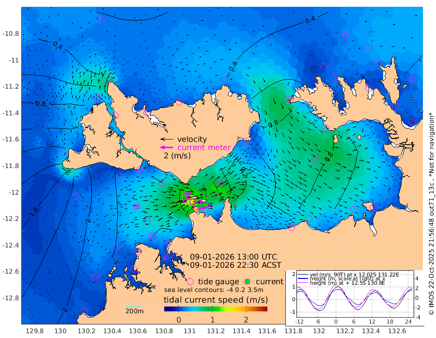 168cm/s 78T +4cm/s rms + 6cm/s 51T. Darwin_C1 52m 112cm/s 93T +4cm/s rms + 7cm/s -161T. Darwin_CW1 22m 106cm/s 72T +4cm/s rms + 8cm/s 61T. Darwin_CW2 34m 92cm/s 46T +3cm/s rms + 9cm/s 98T. Darwin_CW3 22m 165cm/s 89T +5cm/s rms + 7cm/s 88T. Darwin_C3 56m 85cm/s 65T +2cm/s rms + 9cm/s -126T. Darwin_CTbW 22m 30cm/s 77T +1cm/s rms + 1cm/s -47T. DARBGF 30m 22cm/s 98T +4cm/s rms + 3cm/s 80T. NRSDAR 19m 16cm Goodrich Bank 174cm Point Jenny 174cm Native Point 195cm Fish Reef 197cm Tapa Bay 99cm Point Fawcett (Offshore) 214cm Burge Point 190cm Munkunuwa 157cm Beagle A 213cm Parsons Bank 207cm Fenton Patches 203cm Hancox Shoal Area 214cm Nightcliff 236cm Darwin 213cm Charles Point Patches 169cm Glyde Point 129cm Chambers Bay 123cm Point Stuart 141cm Cape Hotham 115cm Christine Reef 130cm West Alligator Head 114cm East Field Island 119cm Two Hills Bay 110cm Camp Point 202cm Medina Inlet South 88cm South Barlow Point 56cm St. Asaph Bay 19cm Cape Van Dieman 29cm Snake Bay 23cm Cache Point 39cm Point Jahleel (Off) 80cm Cape Don 46cm Port Essington 47cm Smith Point - West 41cm NW Peacock Island 27cm North Of Jones Shoal 11cm Peacock Island 49cm Point David 47cm D'urville Point 49cm Copeland Island 52cm One Tree Point