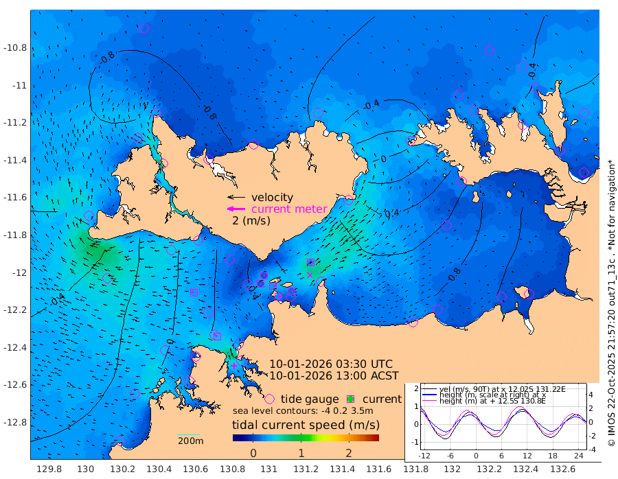 23cm/s 83T +4cm/s rms + 6cm/s 51T. Darwin_C1 52m 12cm/s 85T +4cm/s rms + 7cm/s -161T. Darwin_CW1 22m 10cm/s 73T +4cm/s rms + 8cm/s 61T. Darwin_CW2 34m 22cm/s 41T +3cm/s rms + 9cm/s 98T. Darwin_CW3 22m 29cm/s 91T +5cm/s rms + 7cm/s 88T. Darwin_C3 56m 11cm/s 69T +2cm/s rms + 9cm/s -126T. Darwin_CTbW 22m 29cm/s -83T +1cm/s rms + 1cm/s -47T. DARBGF 30m 39cm/s -53T +4cm/s rms + 3cm/s 80T. NRSDAR 19m -68cm Goodrich Bank -6cm Point Jenny -13cm Native Point 5cm Fish Reef 3cm Tapa Bay -41cm Point Fawcett (Offshore) 10cm Burge Point -8cm Munkunuwa -26cm Beagle A 20cm Parsons Bank 4cm Fenton Patches 33cm Hancox Shoal Area 23cm Nightcliff 29cm Darwin 8cm Charles Point Patches 59cm Glyde Point 116cm Chambers Bay 131cm Point Stuart 80cm Cape Hotham 96cm Christine Reef 150cm West Alligator Head 167cm East Field Island 90cm Two Hills Bay 69cm Camp Point 0cm Medina Inlet South -60cm South Barlow Point -63cm St. Asaph Bay -69cm Cape Van Dieman -70cm Snake Bay -56cm Cache Point -38cm Point Jahleel (Off) 4cm Cape Don -30cm Port Essington -30cm Smith Point - West -28cm NW Peacock Island -36cm North Of Jones Shoal -11cm Peacock Island 0cm Point David -26cm D'urville Point 7cm Copeland Island -2cm One Tree Point
