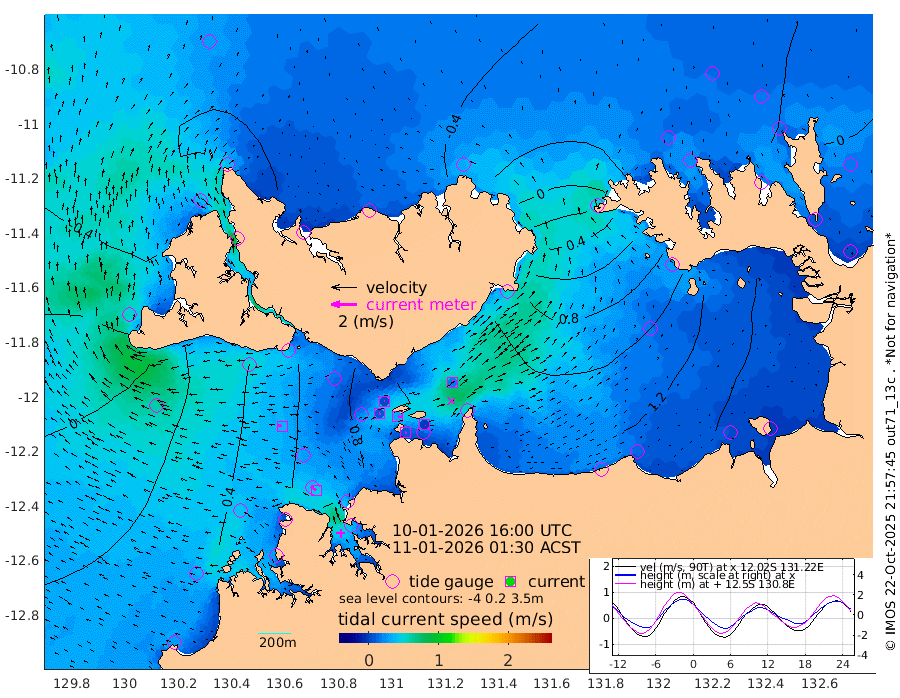 7cm/s 80T +4cm/s rms + 6cm/s 51T. Darwin_C1 52m 2cm/s 80T +4cm/s rms + 7cm/s -161T. Darwin_CW1 22m 9cm/s 74T +4cm/s rms + 8cm/s 61T. Darwin_CW2 34m 20cm/s 40T +3cm/s rms + 9cm/s 98T. Darwin_CW3 22m 32cm/s 94T +5cm/s rms + 7cm/s 88T. Darwin_C3 56m 3cm/s 68T +2cm/s rms + 9cm/s -126T. Darwin_CTbW 22m 38cm/s -82T +1cm/s rms + 1cm/s -47T. DARBGF 30m 46cm/s -52T +4cm/s rms + 3cm/s 80T. NRSDAR 19m -53cm Goodrich Bank 4cm Point Jenny 2cm Native Point 17cm Fish Reef 12cm Tapa Bay -39cm Point Fawcett (Offshore) 31cm Burge Point -1cm Munkunuwa -6cm Beagle A 31cm Parsons Bank 28cm Fenton Patches 37cm Hancox Shoal Area 28cm Nightcliff 48cm Darwin 25cm Charles Point Patches 80cm Glyde Point 127cm Chambers Bay 149cm Point Stuart 89cm Cape Hotham 112cm Christine Reef 168cm West Alligator Head 192cm East Field Island 102cm Two Hills Bay 92cm Camp Point 15cm Medina Inlet South -47cm South Barlow Point -57cm St. Asaph Bay -56cm Cape Van Dieman -53cm Snake Bay -46cm Cache Point -29cm Point Jahleel (Off) 15cm Cape Don -21cm Port Essington -26cm Smith Point - West -23cm NW Peacock Island -38cm North Of Jones Shoal -12cm Peacock Island -1cm Point David -22cm D'urville Point 2cm Copeland Island -2cm One Tree Point
