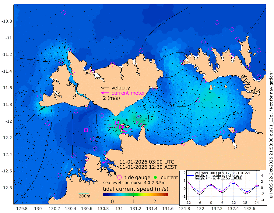 82cm/s 79T +4cm/s rms + 6cm/s 51T. Darwin_C1 52m 52cm/s 92T +4cm/s rms + 7cm/s -161T. Darwin_CW1 22m 51cm/s 72T +4cm/s rms + 8cm/s 61T. Darwin_CW2 34m 40cm/s 50T +3cm/s rms + 9cm/s 98T. Darwin_CW3 22m 84cm/s 89T +5cm/s rms + 7cm/s 88T. Darwin_C3 56m 43cm/s 66T +2cm/s rms + 9cm/s -126T. Darwin_CTbW 22m 5cm/s 40T +1cm/s rms + 1cm/s -47T. DARBGF 30m 10cm/s -30T +4cm/s rms + 3cm/s 80T. NRSDAR 19m -37cm Goodrich Bank 51cm Point Jenny 47cm Native Point 62cm Fish Reef 66cm Tapa Bay 15cm Point Fawcett (Offshore) 62cm Burge Point 61cm Munkunuwa 25cm Beagle A 77cm Parsons Bank 55cm Fenton Patches 82cm Hancox Shoal Area 80cm Nightcliff 85cm Darwin 68cm Charles Point Patches 74cm Glyde Point 90cm Chambers Bay 92cm Point Stuart 78cm Cape Hotham 70cm Christine Reef 103cm West Alligator Head 98cm East Field Island 75cm Two Hills Bay 55cm Camp Point 64cm Medina Inlet South -5cm South Barlow Point -15cm St. Asaph Bay -34cm Cape Van Dieman -31cm Snake Bay -26cm Cache Point -11cm Point Jahleel (Off) 23cm Cape Don -3cm Port Essington -1cm Smith Point - West -3cm NW Peacock Island -9cm North Of Jones Shoal -1cm Peacock Island 19cm Point David 1cm D'urville Point 23cm Copeland Island 18cm One Tree Point