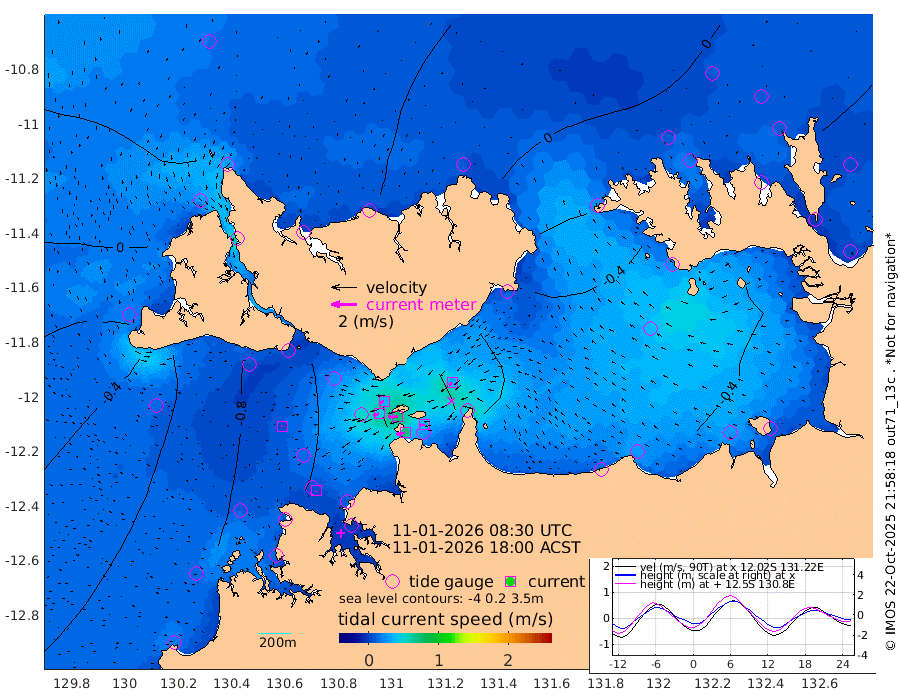 68cm/s -101T +4cm/s rms + 6cm/s 51T. Darwin_C1 52m 40cm/s -90T +4cm/s rms + 7cm/s -161T. Darwin_CW1 22m 45cm/s -106T +4cm/s rms + 8cm/s 61T. Darwin_CW2 34m 32cm/s -131T +3cm/s rms + 9cm/s 98T. Darwin_CW3 22m 76cm/s -91T +5cm/s rms + 7cm/s 88T. Darwin_C3 56m 40cm/s -115T +2cm/s rms + 9cm/s -126T. Darwin_CTbW 22m 3cm/s -139T +1cm/s rms + 1cm/s -47T. DARBGF 30m 6cm/s -166T +4cm/s rms + 3cm/s 80T. NRSDAR 19m 36cm Goodrich Bank -36cm Point Jenny -36cm Native Point -46cm Fish Reef -53cm Tapa Bay 2cm Point Fawcett (Offshore) -49cm Burge Point -52cm Munkunuwa -11cm Beagle A -69cm Parsons Bank -42cm Fenton Patches -67cm Hancox Shoal Area -60cm Nightcliff -77cm Darwin -61cm Charles Point Patches -59cm Glyde Point -59cm Chambers Bay -61cm Point Stuart -52cm Cape Hotham -42cm Christine Reef -67cm West Alligator Head -60cm East Field Island -50cm Two Hills Bay -39cm Camp Point -55cm Medina Inlet South 6cm South Barlow Point 23cm St. Asaph Bay 33cm Cape Van Dieman 27cm Snake Bay 32cm Cache Point 18cm Point Jahleel (Off) -16cm Cape Don 4cm Port Essington 5cm Smith Point - West 5cm NW Peacock Island 18cm North Of Jones Shoal 4cm Peacock Island -20cm Point David 0cm D'urville Point -22cm Copeland Island -16cm One Tree Point