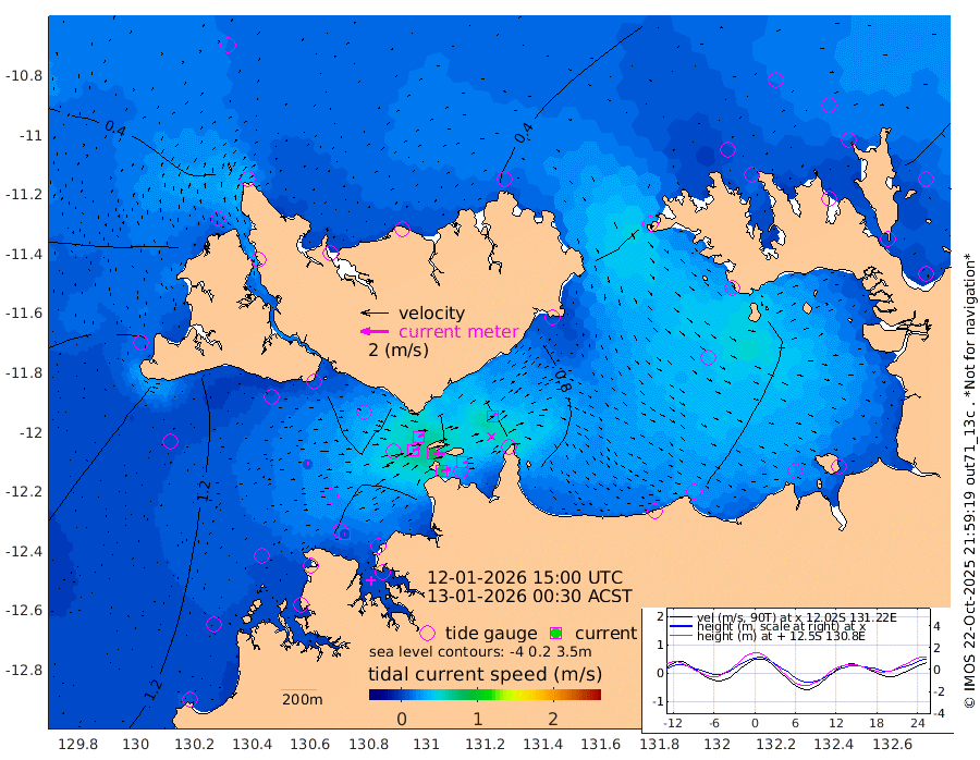 69cm/s 78T +4cm/s rms + 6cm/s 51T. Darwin_C1 52m 41cm/s 89T +4cm/s rms + 7cm/s -161T. Darwin_CW1 22m 50cm/s 73T +4cm/s rms + 8cm/s 61T. Darwin_CW2 34m 35cm/s 46T +3cm/s rms + 9cm/s 98T. Darwin_CW3 22m 82cm/s 89T +5cm/s rms + 7cm/s 88T. Darwin_C3 56m 43cm/s 65T +2cm/s rms + 9cm/s -126T. Darwin_CTbW 22m 12cm/s 73T +1cm/s rms + 1cm/s -47T. DARBGF 30m 6cm/s 75T +4cm/s rms + 3cm/s 80T. NRSDAR 19m 15cm Goodrich Bank 85cm Point Jenny 84cm Native Point 96cm Fish Reef 94cm Tapa Bay 52cm Point Fawcett (Offshore) 104cm Burge Point 84cm Munkunuwa 77cm Beagle A 108cm Parsons Bank 101cm Fenton Patches 104cm Hancox Shoal Area 112cm Nightcliff 122cm Darwin 109cm Charles Point Patches 94cm Glyde Point 82cm Chambers Bay 78cm Point Stuart 83cm Cape Hotham 73cm Christine Reef 82cm West Alligator Head 76cm East Field Island 78cm Two Hills Bay 70cm Camp Point 101cm Medina Inlet South 50cm South Barlow Point 30cm St. Asaph Bay 16cm Cape Van Dieman 27cm Snake Bay 21cm Cache Point 30cm Point Jahleel (Off) 58cm Cape Don 40cm Port Essington 41cm Smith Point - West 41cm NW Peacock Island 33cm North Of Jones Shoal 13cm Peacock Island 52cm Point David 45cm D'urville Point 52cm Copeland Island 55cm One Tree Point