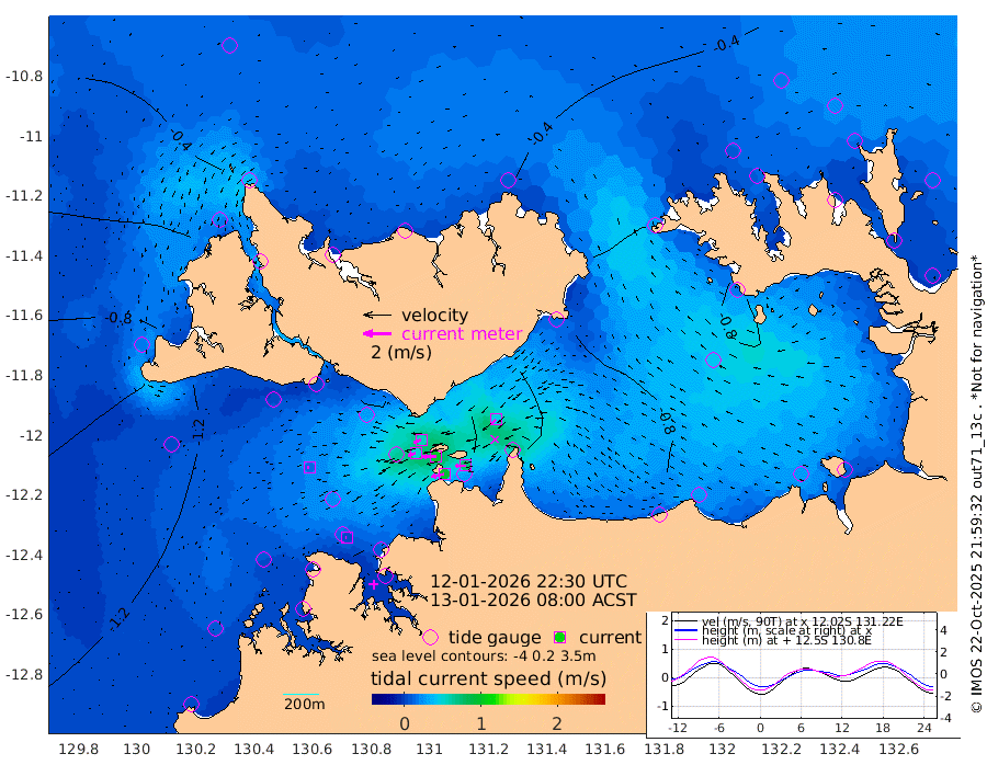 92cm/s -101T +4cm/s rms + 6cm/s 51T. Darwin_C1 52m 74cm/s -91T +4cm/s rms + 7cm/s -161T. Darwin_CW1 22m 53cm/s -105T +4cm/s rms + 8cm/s 61T. Darwin_CW2 34m 47cm/s -135T +3cm/s rms + 9cm/s 98T. Darwin_CW3 22m 97cm/s -90T +5cm/s rms + 7cm/s 88T. Darwin_C3 56m 56cm/s -115T +2cm/s rms + 9cm/s -126T. Darwin_CTbW 22m 14cm/s -108T +1cm/s rms + 1cm/s -47T. DARBGF 30m 6cm/s -106T +4cm/s rms + 3cm/s 80T. NRSDAR 19m -21cm Goodrich Bank -118cm Point Jenny -114cm Native Point -131cm Fish Reef -127cm Tapa Bay -82cm Point Fawcett (Offshore) -135cm Burge Point -108cm Munkunuwa -109cm Beagle A -128cm Parsons Bank -133cm Fenton Patches -132cm Hancox Shoal Area -146cm Nightcliff -148cm Darwin -136cm Charles Point Patches -128cm Glyde Point -128cm Chambers Bay -128cm Point Stuart -123cm Cape Hotham -114cm Christine Reef -138cm West Alligator Head -138cm East Field Island -117cm Two Hills Bay -103cm Camp Point -128cm Medina Inlet South -59cm South Barlow Point -48cm St. Asaph Bay -23cm Cape Van Dieman -29cm Snake Bay -34cm Cache Point -43cm Point Jahleel (Off) -73cm Cape Don -44cm Port Essington -45cm Smith Point - West -42cm NW Peacock Island -42cm North Of Jones Shoal -15cm Peacock Island -48cm Point David -45cm D'urville Point -49cm Copeland Island -54cm One Tree Point