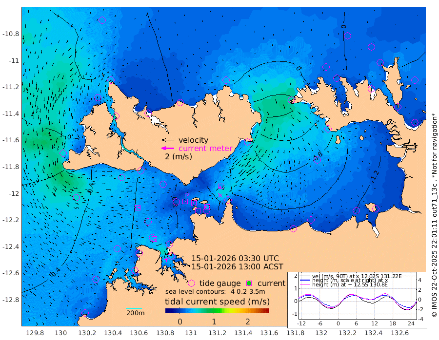 4cm/s 59T +4cm/s rms + 6cm/s 51T. Darwin_C1 52m 31cm/s -94T +4cm/s rms + 7cm/s -161T. Darwin_CW1 22m 10cm/s 69T +4cm/s rms + 8cm/s 61T. Darwin_CW2 34m 28cm/s -150T +3cm/s rms + 9cm/s 98T. Darwin_CW3 22m 13cm/s -81T +5cm/s rms + 7cm/s 88T. Darwin_C3 56m 21cm/s 63T +2cm/s rms + 9cm/s -126T. Darwin_CTbW 22m 33cm/s 97T +1cm/s rms + 1cm/s -47T. DARBGF 30m 37cm/s 124T +4cm/s rms + 3cm/s 80T. NRSDAR 19m 15cm Goodrich Bank -10cm Point Jenny -9cm Native Point -27cm Fish Reef -18cm Tapa Bay 8cm Point Fawcett (Offshore) -42cm Burge Point -8cm Munkunuwa -10cm Beagle A -32cm Parsons Bank -33cm Fenton Patches -34cm Hancox Shoal Area -29cm Nightcliff -53cm Darwin -40cm Charles Point Patches -68cm Glyde Point -89cm Chambers Bay -110cm Point Stuart -77cm Cape Hotham -77cm Christine Reef -120cm West Alligator Head -141cm East Field Island -79cm Two Hills Bay -81cm Camp Point -26cm Medina Inlet South 14cm South Barlow Point 19cm St. Asaph Bay 18cm Cape Van Dieman 12cm Snake Bay 11cm Cache Point 2cm Point Jahleel (Off) -24cm Cape Don -4cm Port Essington 6cm Smith Point - West 0cm NW Peacock Island 3cm North Of Jones Shoal 0cm Peacock Island -19cm Point David 2cm D'urville Point -19cm Copeland Island -20cm One Tree Point